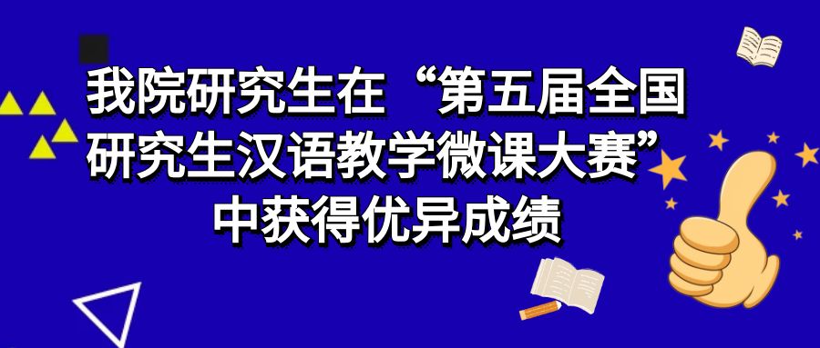 近日,由北京师范大学国际中文教育博彩体育 、西北师范大学国际文化交流博彩体育 以及北京唐风汉语教育科技有限公司共同发起的“第五届全国研究生汉语教学微课大赛”获奖名单揭晓。经过初赛与决赛的激烈角逐,在行业内各高校相关专业负责人、学术专家、一线教师及研究生汉语教学微课大赛专家委员的共同评审下,本次大赛各项奖项均已决出。博彩体育 参赛选手在本次微课大赛中获得优异成绩:个人赛三等奖2人,优秀奖2人;团体赛优秀奖1个教学...