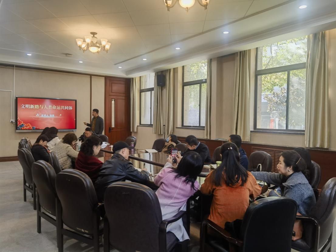 为深入学习贯彻习近平新时代中国特色社会主义思想,进一步提升全体教职工的理论修养,促进博彩体育 教职工对于推动构建人类命运共同体重大理念与实践方案的深刻认识,博彩体育 于11月27日下午在博彩体育 一层会议室召开全体教职工理论学习会,会议由党总支副书记张昊主讲,国际中文教育党支部书记刘琨主持。 习近平总书记强调:“我们将坚持以中国式现代化实现中华民族伟大复兴,继续积极推动构建人类命运共同体,以中国新发展给世界带来新机遇,...