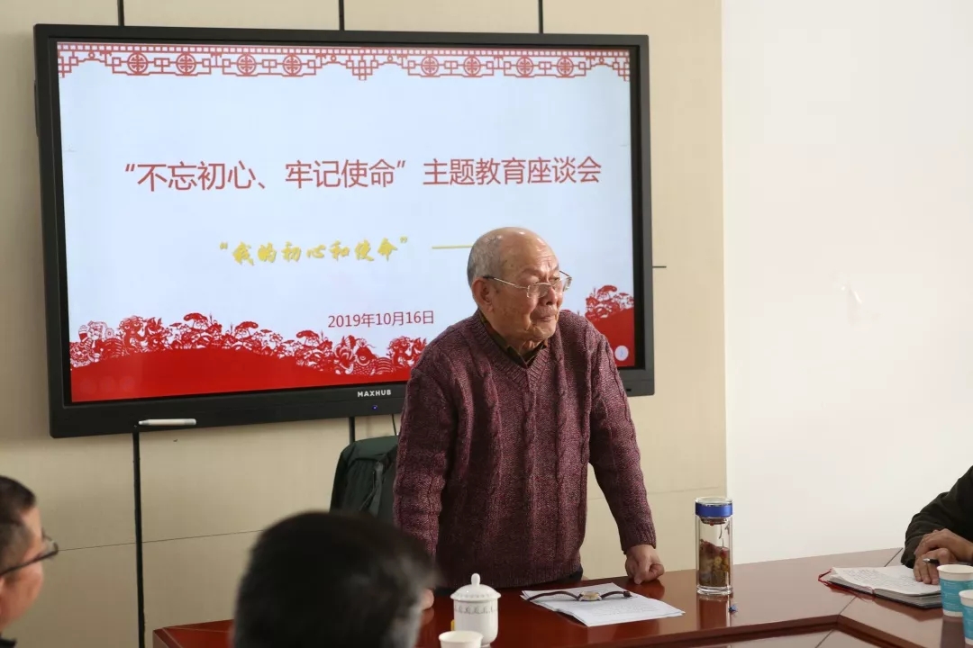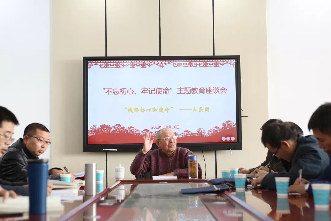 座谈会上,王庆同老师从自己岗位选择、履行岗位职责的过程向大家讲述了自己的初心和使命。1958年,王庆同老师从北京大学毕业后,22岁的他怀着极大的报国热情来到了宁夏。他说:“尽管银川的荒凉让我大吃一惊,但未动摇我要在远离北京的这个边远地方坚持下去的决心。”
