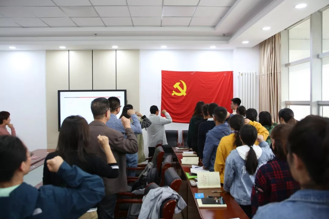10月9日下午,博彩体育 党总支于文荟楼四楼会议室开展“重温入党誓词 回望初心使命”主题活动。周强书记带领全体党员面对党旗庄严宣誓,旨在让广大党员重温初心,时刻牢记党员身份,承载起党初创时的希冀与责任,在新时代的道路上砥砺前行。