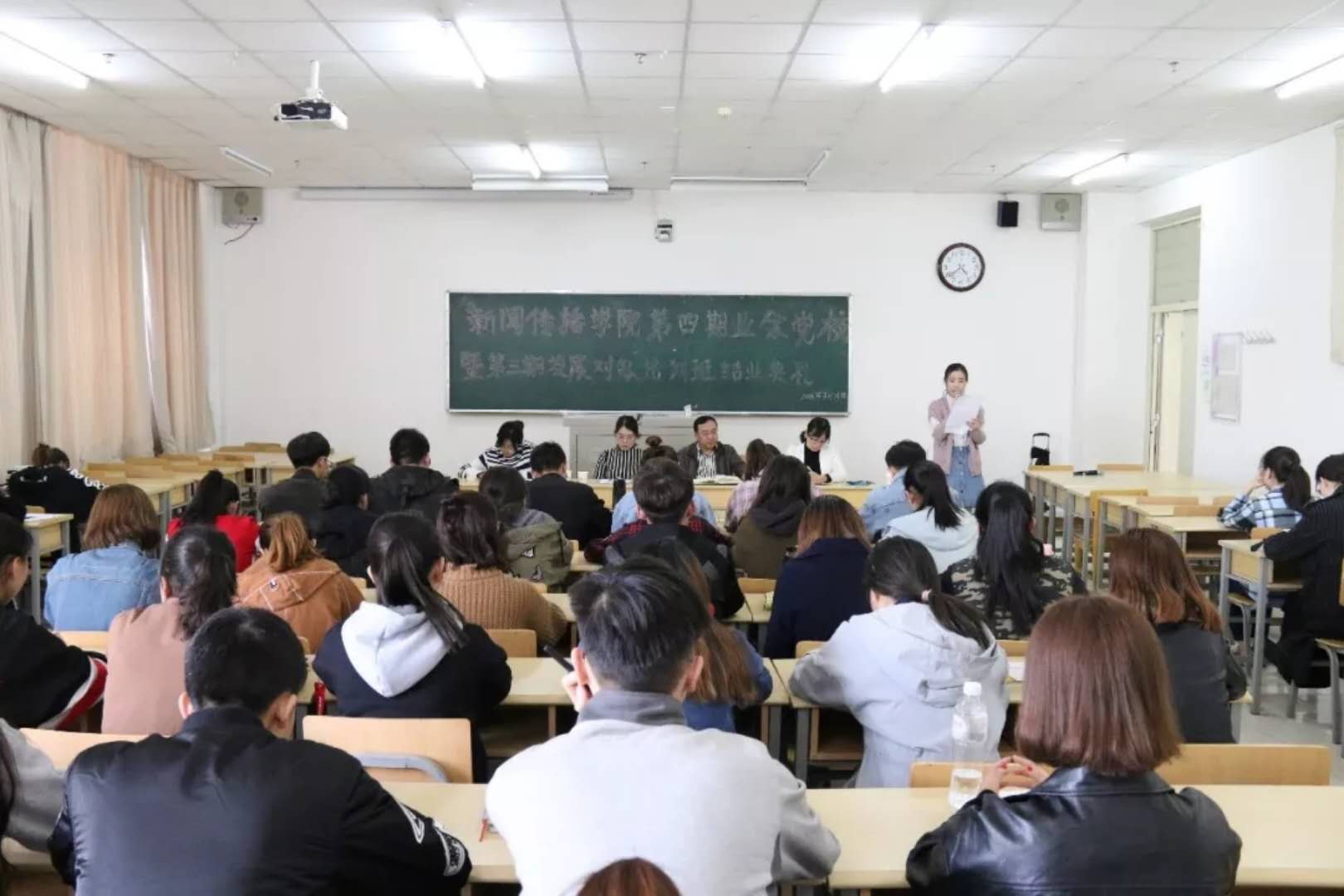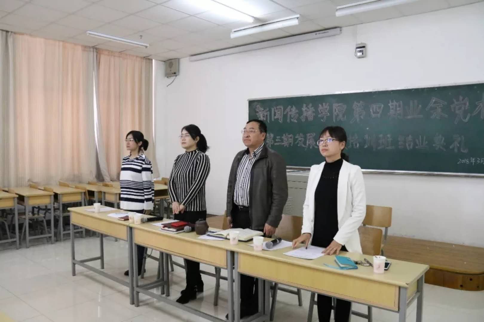 3月21日,博彩体育 第三期入党发展对象以及全体入党积极分子在文荟楼418教室参加了第四期业余党校暨第三期发展对象培训结业典礼。博彩体育 党总支书记周强、党总支副书记马骏、学生工作办公室主任李瑾参加会议。辅导员雷丽霞主持本次会议。