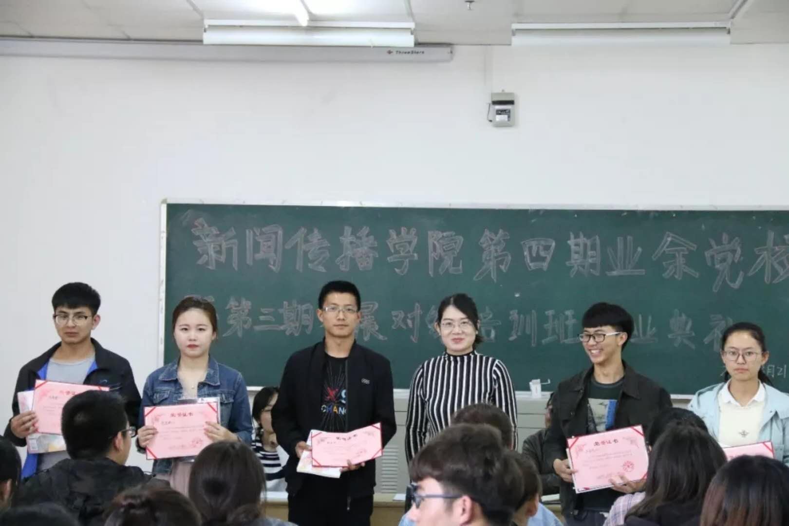 会议在高昂的国歌声中开始,首先,由各位老师向优秀学员颁发奖状及奖品,入党积极分子代表发言。随后,周书记向本期顺利结业的学员以及优秀学员表示祝贺,并向辛苦付出的老师们表示感谢。他说:“第四期业余党校结业典礼今天圆满落下了帷幕,同学们通过系统学习党的知识,端正了入党动机,理解了坚定不移走中国特色社会主义道路的意义,但仍需砥砺前行。”同时,周书记还勉励大家一定要坚定理想信念,不忘初心,以高标准、严要求规范自身,团结协作,脚踏实地,在实践中提高创新能力,为党的伟大事业奋斗终身。