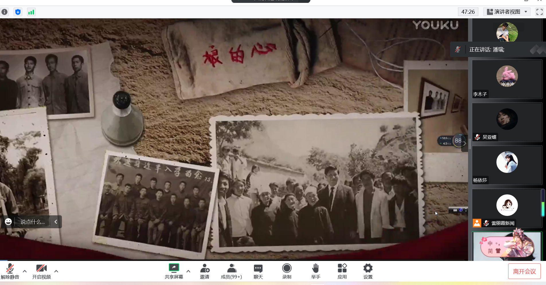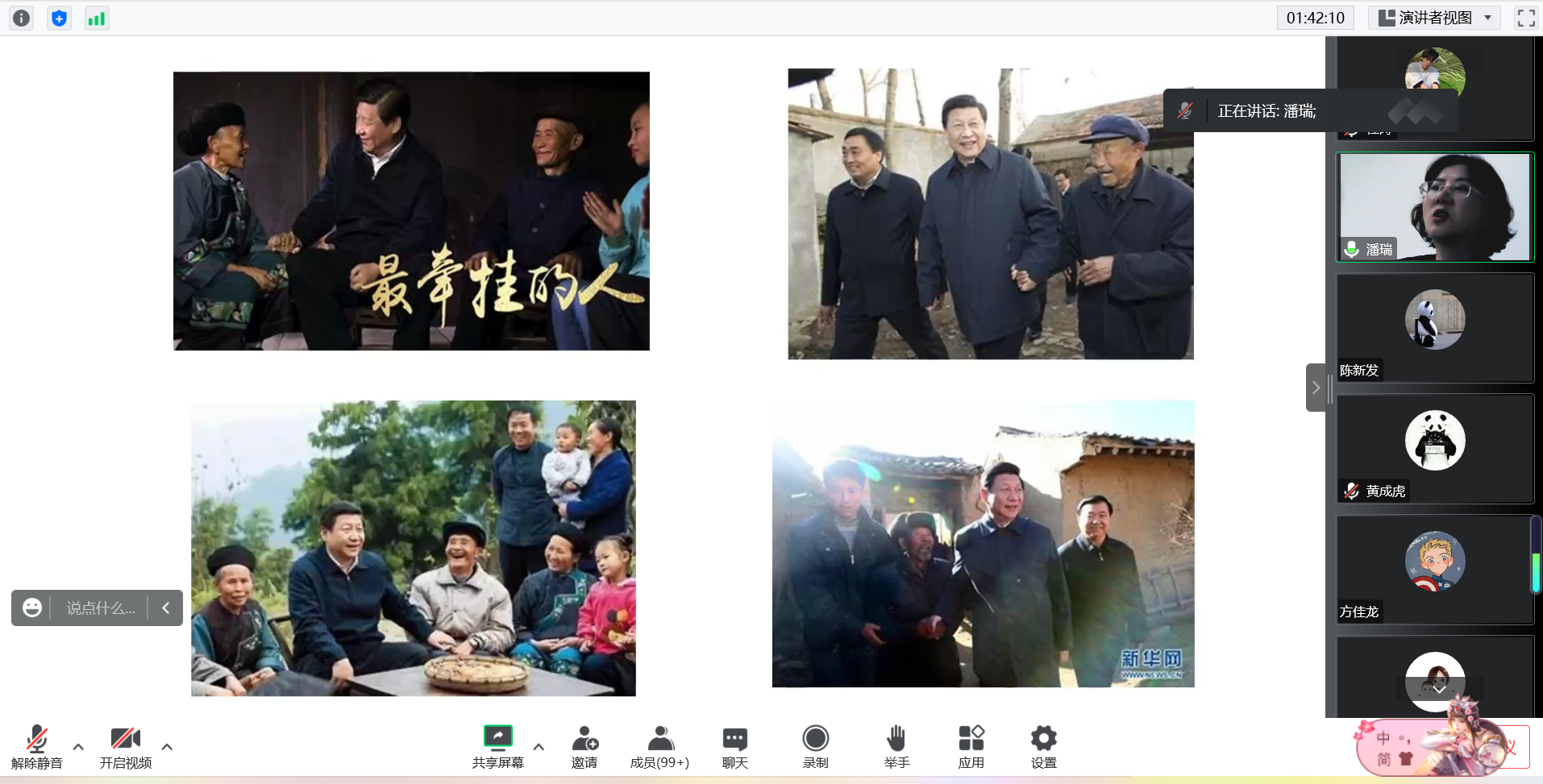 潘瑞向大家分享了《习近平的七年知青岁月》读书体会,通过视频播放、内容讲解,带领大家来到书中陕北的偏远小山沟,生动再现了青年习近平在梁家河七年的艰苦生活和成长历程。