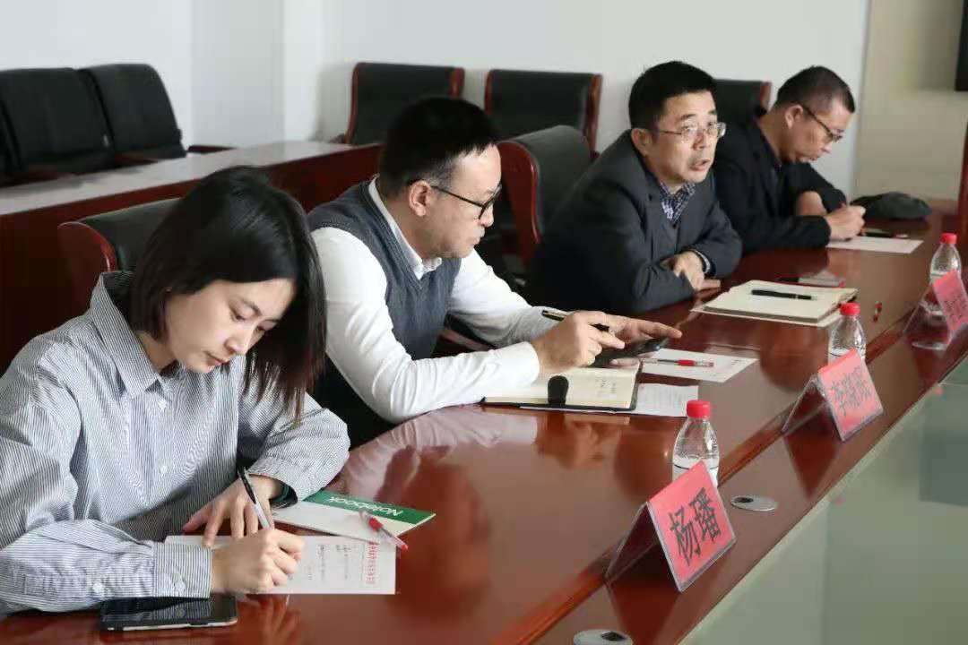 执行院长李世举、党总支副书记李晓珉、广告系主任朱俊松和杨璠老师与来宾在文荟楼四楼会议室进行深入交流学习。