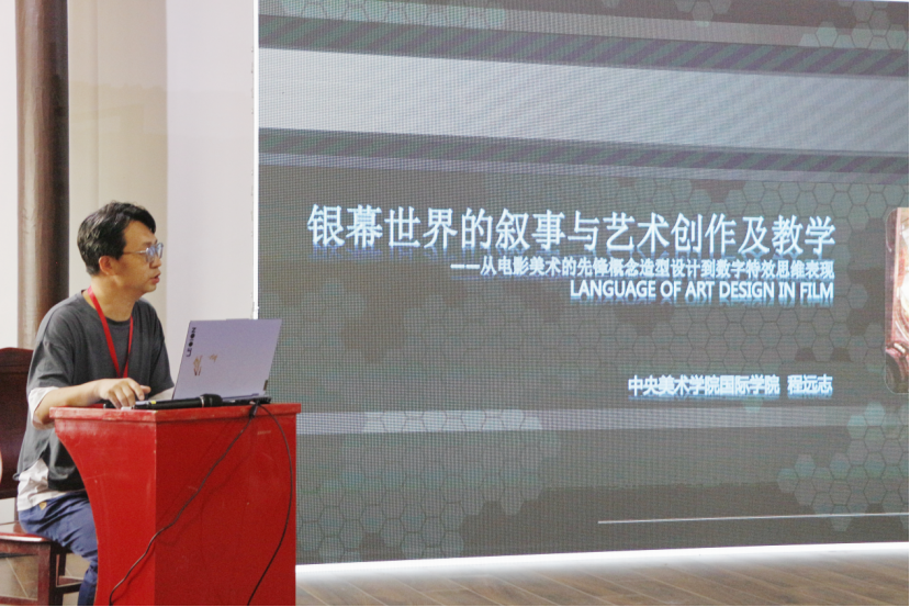 中国美术博彩体育 国际博彩体育 程远志教师以《银幕世界的叙事与艺术创作及教学》为题,结合自身影视制作经验,分享了丰富的实践案例与业界经验,展示了应该如何更好地提炼视觉要素和建⽴视觉形象。他认为,剧本到视觉的转化与拓展需要从各个学科中汲取营养,人工智能时代电影产业人才培养亦需要各学科的融合。AIGC在赋能影视制作中仍存在一些不足之处,但我们理应做好结合的准备。