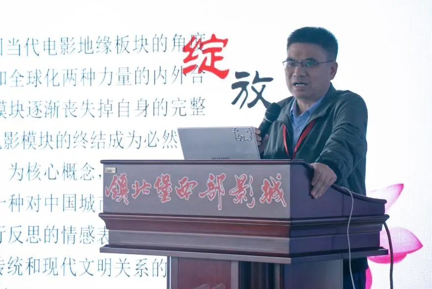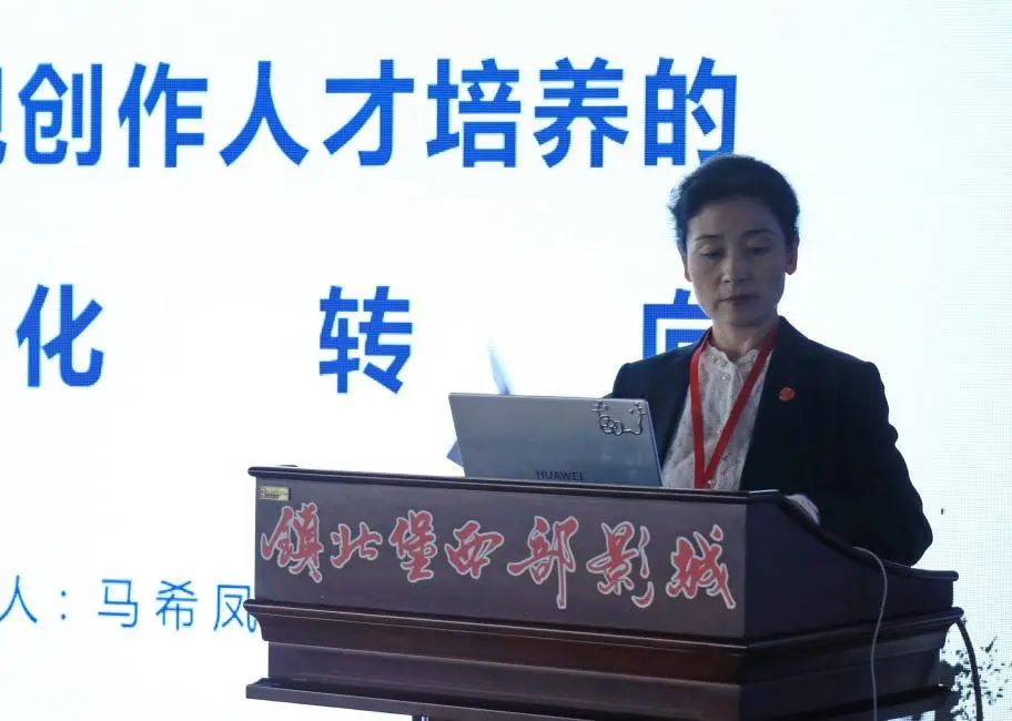 王丽萍教授以《以叙传情以象尽意:观宁夏元素影视剧中的意境“文心”》为题作主旨发言,通过分析极具宁夏元素的影视作品《新龙门客栈》《牧马人》《山海情》等,聚焦时代新风与地域地貌两个角度阐释宁夏题材影视剧中第一重“文心”——以叙传情;其次聚焦立典型、立众象阐释宁夏题材影视剧中第二重“文心”——以象尽意。