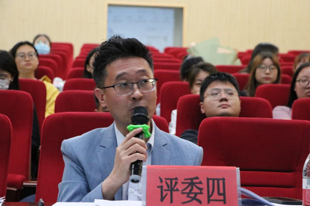 小组答辩中,同学们借助PPT,音频,视频等向评委阐述论文选题目的、理论框架、研究方法及实际意义,评委老师点评提问,肯定同学们优秀表现的同时指出不足之处。