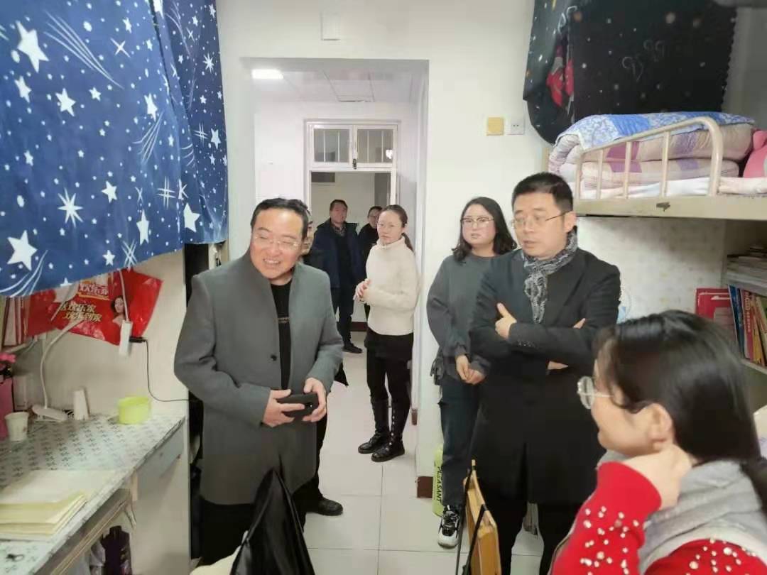 领导、教师和辅导员一起走近学生,互动交流,为严寒冬日里备考学子送上满满关怀。