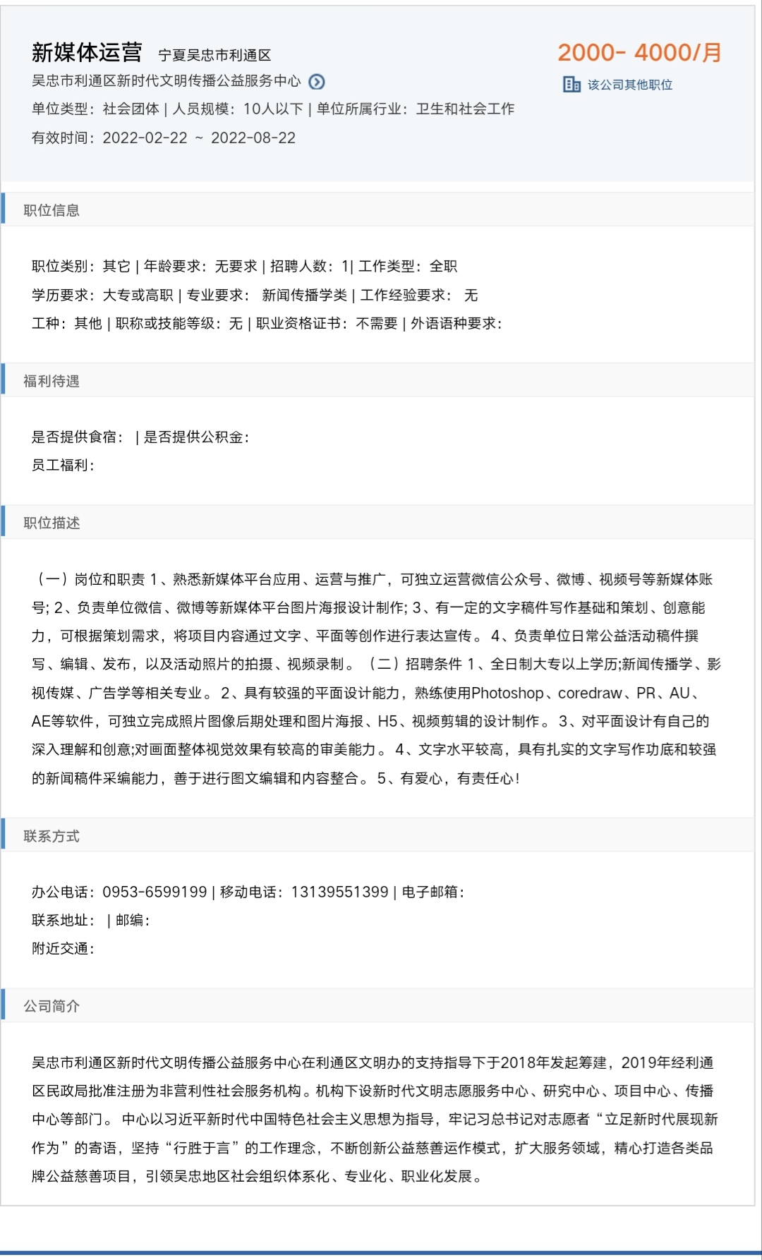 公司:吴忠市利通区新时代文明传播公益服务中心