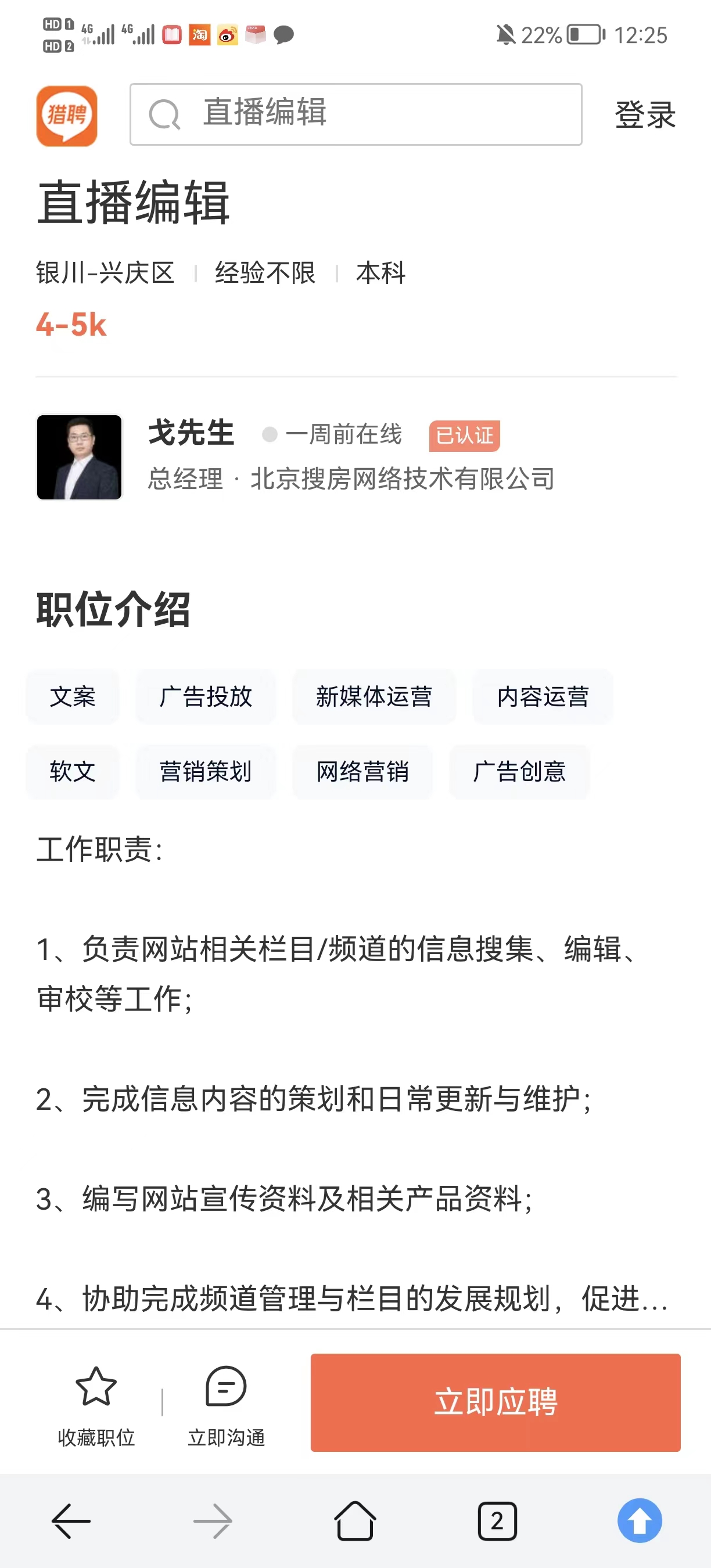 岗位:编辑