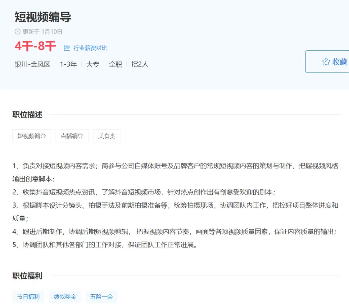 职位:短视频编导