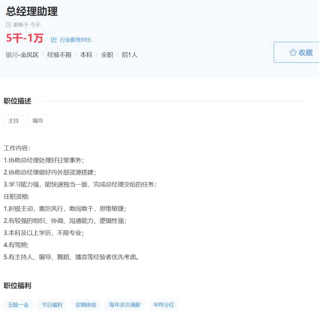 职位:总经理助理