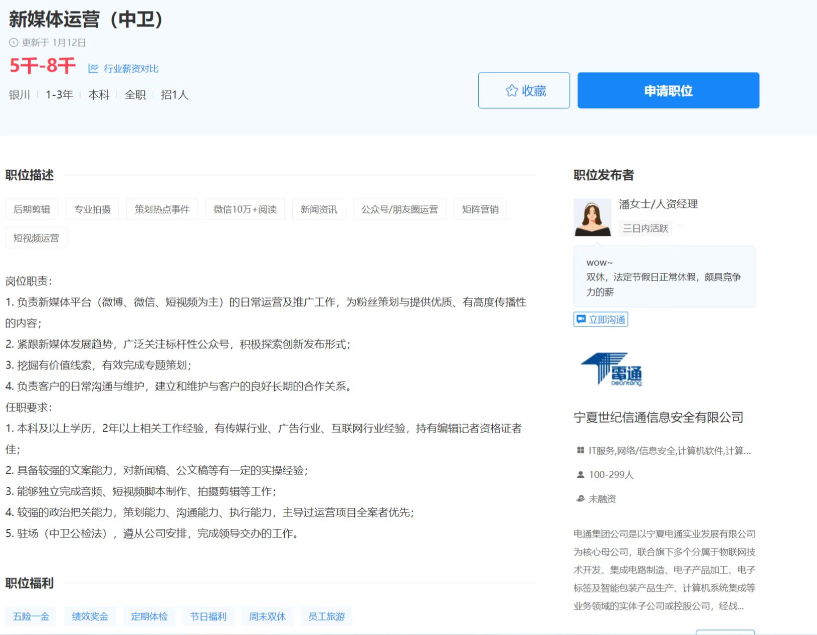 职位:新媒体运营