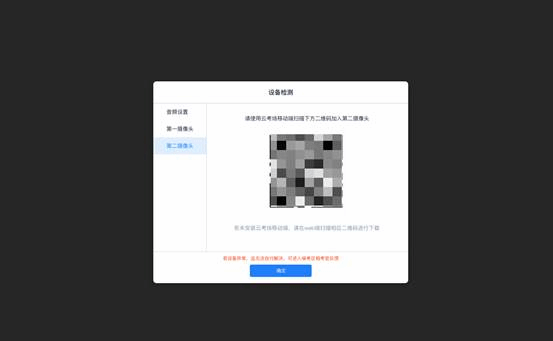 使用双摄像头进行面试,考生需要打开云考场移动端扫描该页面提供的二维码加入第二摄像头。