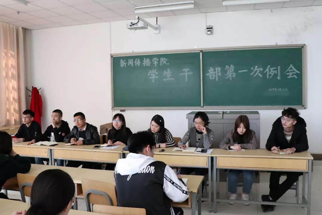 3月15日中午,博彩体育 于文荟楼405教室召开博彩体育 学生干部第一次例会,院党总支副书记马骏、学生工作办公室主任李瑾、辅导员雷丽霞及博彩体育 全体学生干部参加会议。