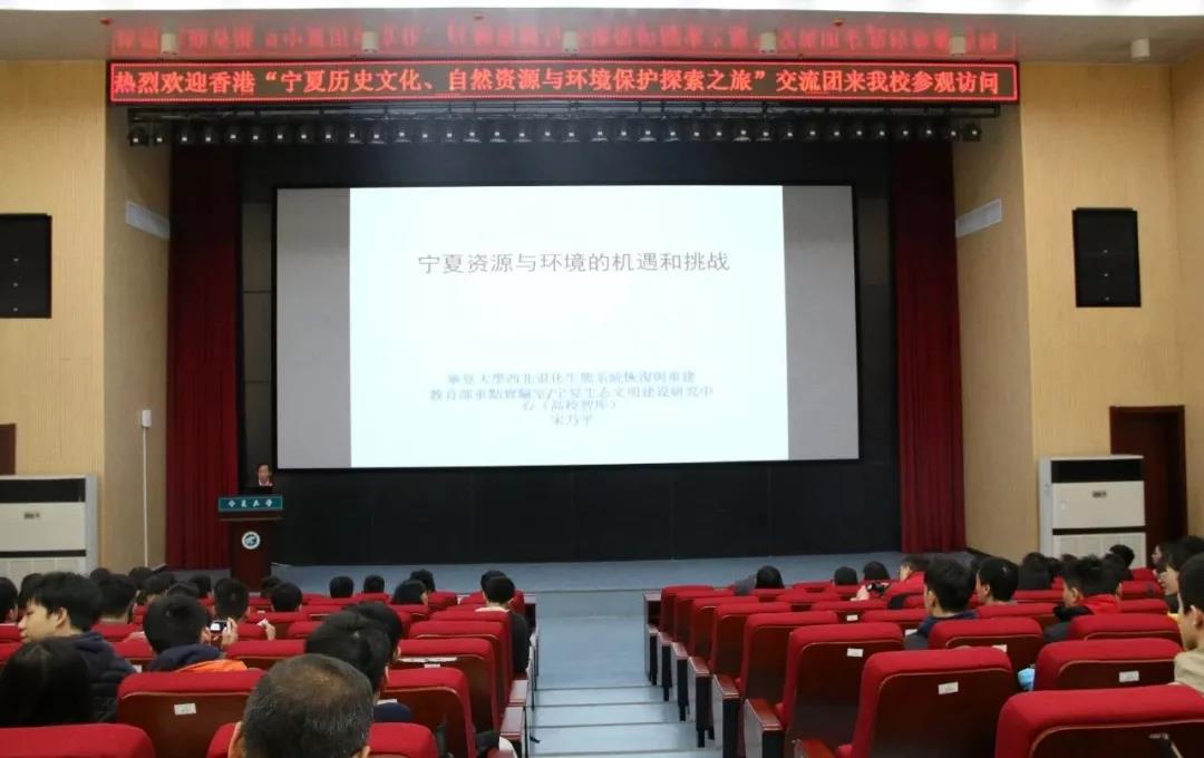 11月14日上午,“宁夏历史文化、自然资源与环境保护探索之旅”香港交流团到博彩体育 参观访问。博彩体育 西部退化生态系统恢复与重建教育部重点实验室主任宋乃平教授于科技楼一楼报告厅为交流团和博彩体育 师生开展题为《宁夏资源与环境的机遇和挑战》的讲座。博彩体育 部分2018级新生参加了此次交流研讨。
