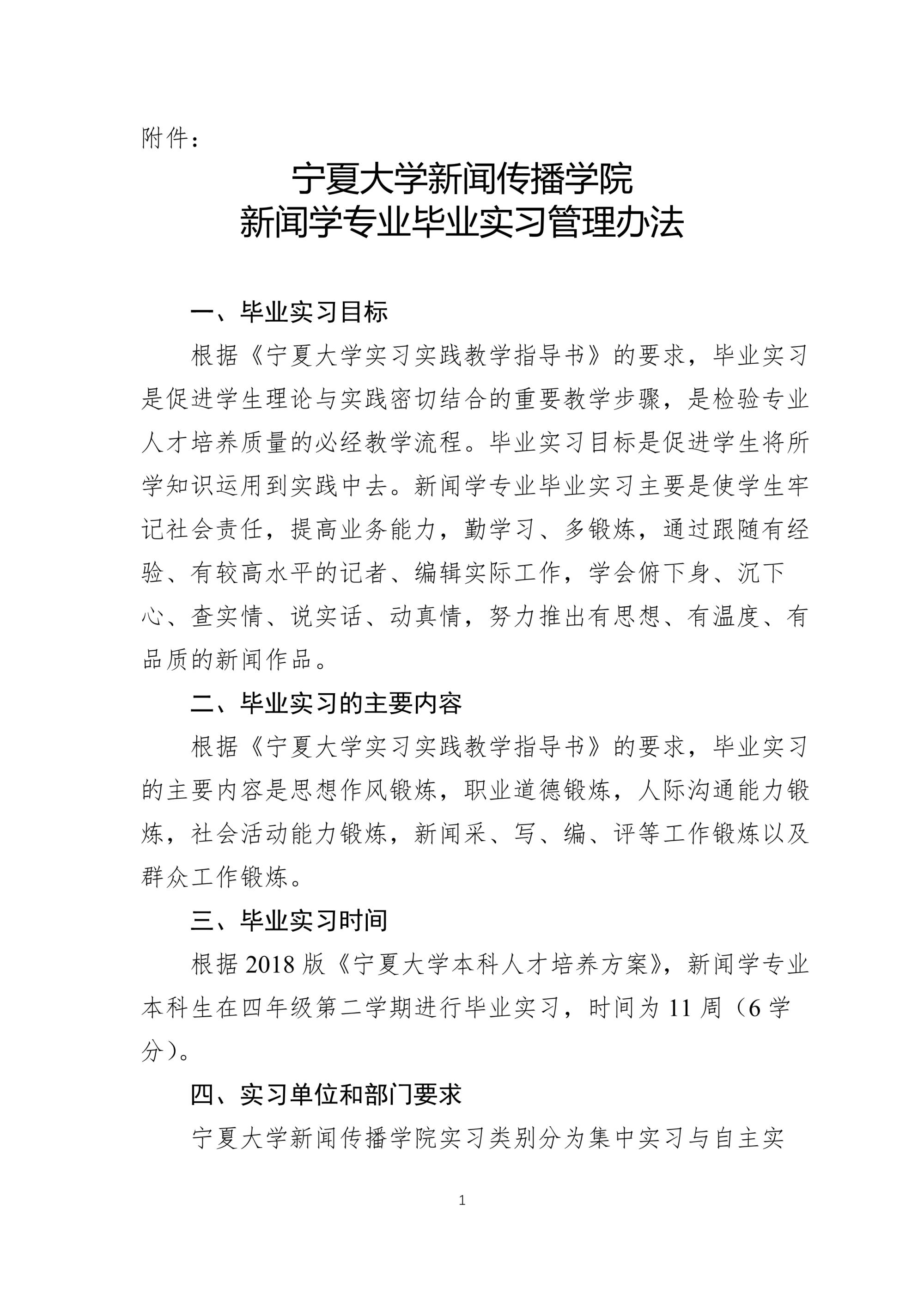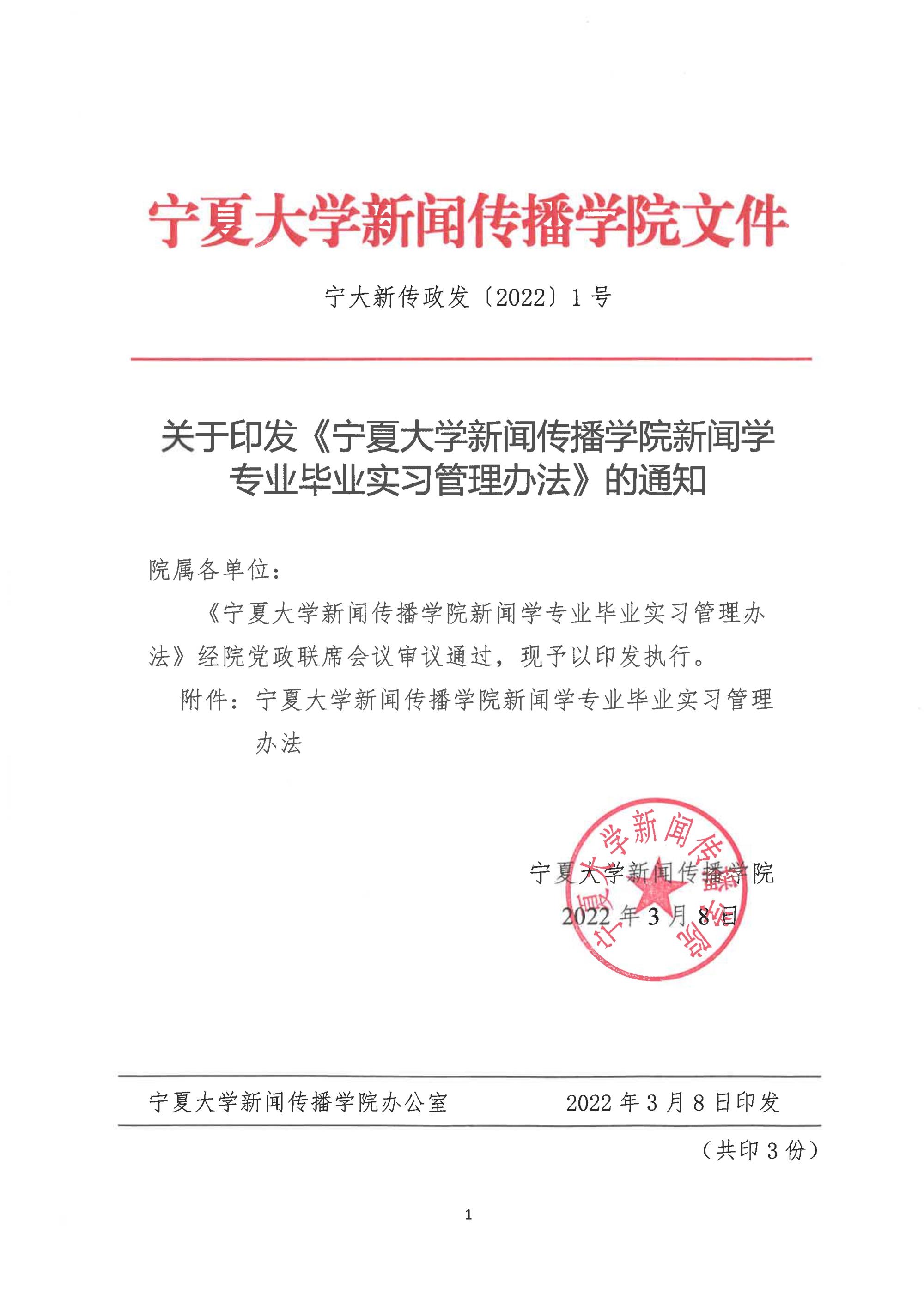 宁大新传政发〔2022〕1号 关于印发《博彩体育 新闻学专业毕业实习管理办法》的通知