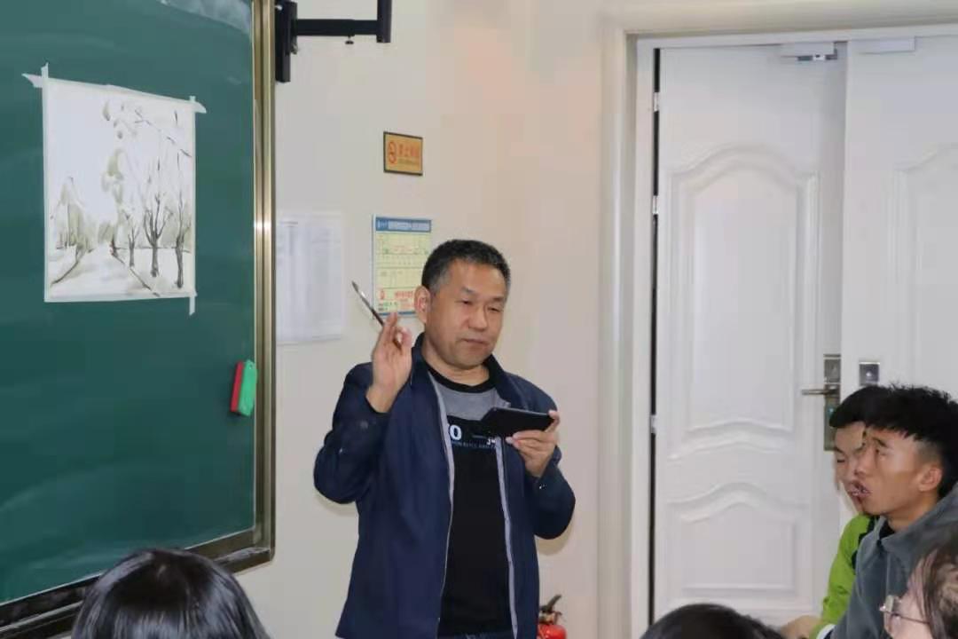 此次观摩课活动中,杨发林老师亲身示范了水彩画的调色、配色以及上色环节,广告班同学围坐在杨发林老师身边认真地观看、学习。杨老师在绘画中不时传授给同学们诸如:绘画不要“钻牛角尖,不要执着于细节”以及“画画要有整体观”等作画心得,同学们不仅学到了如何做出一副水彩画,更明白了如何成为一名优秀的美术家,师生间学习氛围浓厚,气氛活跃。
