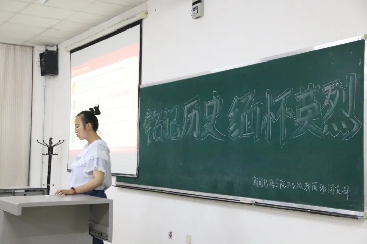 为了纪念中国人民抗日战争暨世界反法西斯战争胜利75周年,学习习近平总书记在纪念抗战英烈座谈会上的重要讲话精神,各班还开展了以“铭记历史,缅怀英烈”为主题的团日活动。待活动开始,各班以视频、图片的形式回忆了抗战时期的艰苦岁月,从历史观、世界观等几个角度介绍了抗战的意义,并为大家具体介绍了习近平总书记在“纪念抗战英烈座谈会”的讲话,生动形象,简明易懂。卓越新闻班林倩同学说到:“先烈们为了国家的命运,战如猛虎、不惜躯命的抗战精神,让我明白爱国不是简单的挂在嘴边,而是要用自己的实际行动去实践,去证明。”