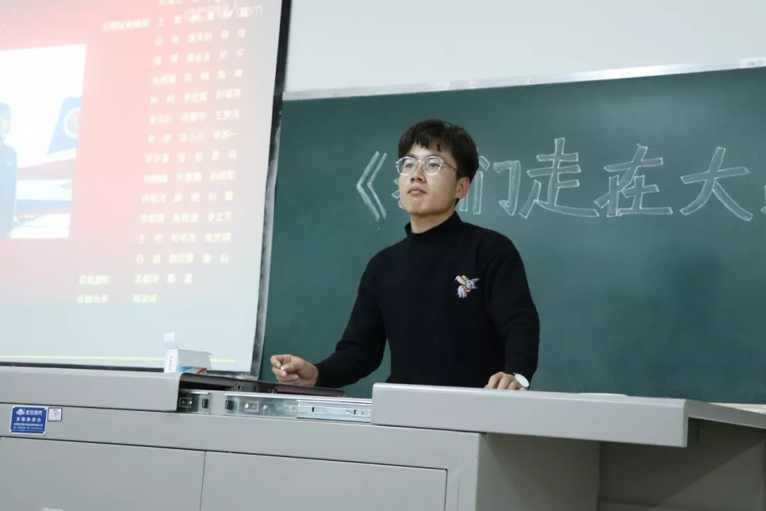 组织2019级全体同学在文荟楼观看了《我们走在大路上》纪录片。
