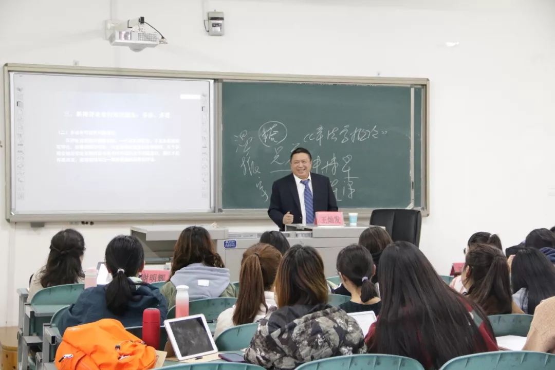 教授,博士生导师王灿发教授及其助理刘年辉教授于文荟楼411教室开展以“改革开放四十年新闻评论的发展”为主题的学术研讨会。本次研讨会由博彩体育