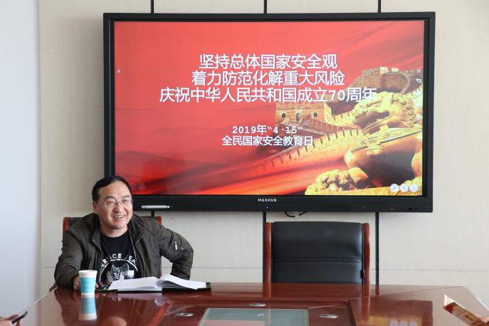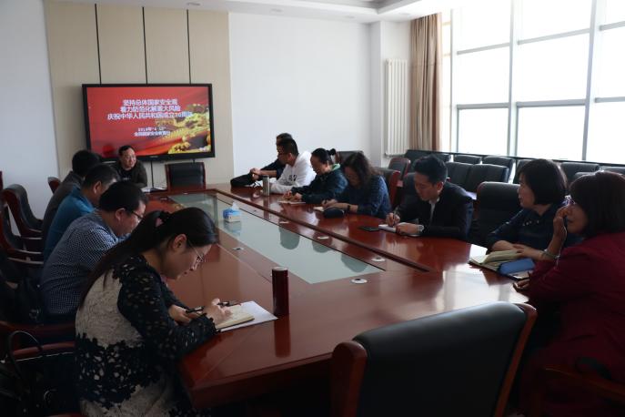 会议室开展了以“坚持总体国家安全观 着力防范化解重大风险 喜迎中华人民共和国成立70周年”为主题的全民国家安全教育日普法宣传活动,由院党总支书记周强主持,全体教职工参加。