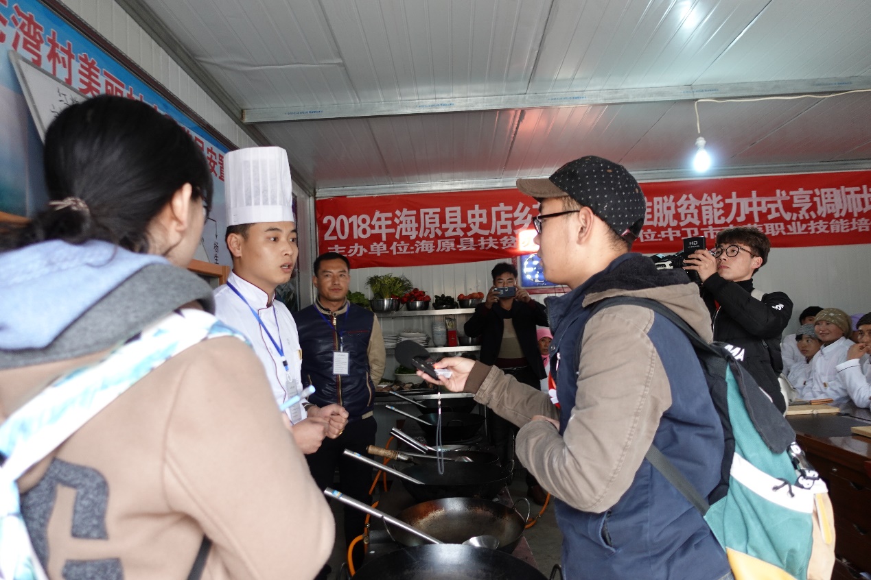 “实战新闻训练营”的14名学生在屠凤娥教授带领下,到宁夏海原县进行“新闻大篷车”采访活动。此次活动还邀请了新华社艾福梅、曹江涛和新消息报社武晓瑜3位记者参加,并对学生进行现场指导。