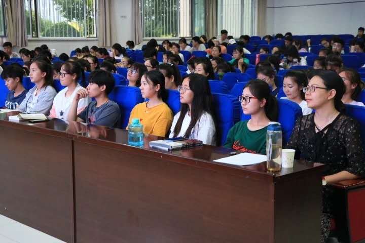 2017级全体学生在文芸楼东报告厅参加了主题为“朗诵艺术浅谈”的讲座,国内知名朗诵家、中国诗歌协会朗诵演唱委员会委员、国家级普通话水平测试员彭鹭主讲。校党委书记金能明出席活动。