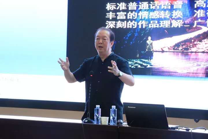 活动中,彭鹭先生就什么是朗诵、什么是朗诵的艺术作了解答并以唐代诗人李白的《将进酒》作为开场,随即感染了在座的每一位同学,现场掌声不断。彭鹭先生提到,“朗诵不仅要有讲好普通话的能力,还要有读懂文章的表现力。”他还结合个人丰富的朗读经验给大家在朗读方面提了三点建议。一要学会标准的普通话;二要理解作品并融入感情,设法表演朗诵;三要适度,注意不同作品有不同的朗诵技巧。