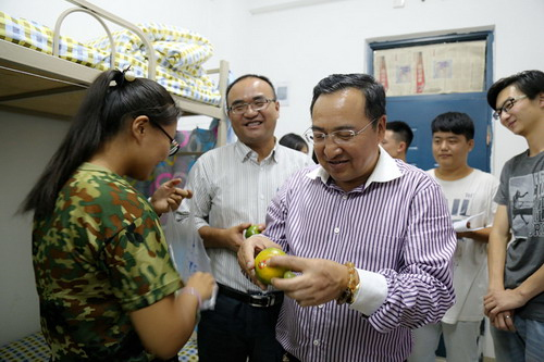 领导亲切的问候了新生初入学的困难,细心的查看了新生的住宿环境,耐心的叮嘱他们开学的注意事项,并鼓励他们尽快适应大学环境,融入到博彩体育