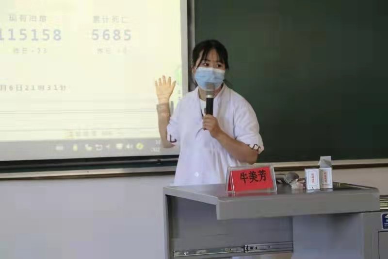 牛美芳从新冠传播源,疫情防护,以及治疗治愈三个方面全方位地向大家讲述了新冠由发生到治愈的全过程,以此来加深学生对疫情的认识,从而对疫情做到更好的防护,从根源上提高同学们的疫情防护意识。牛美芳强调,疫情还未结束,同学们要提高警惕,做好防护,配合社区以及国家的疫情防控工作,为解除疫情奉献自己的力量。