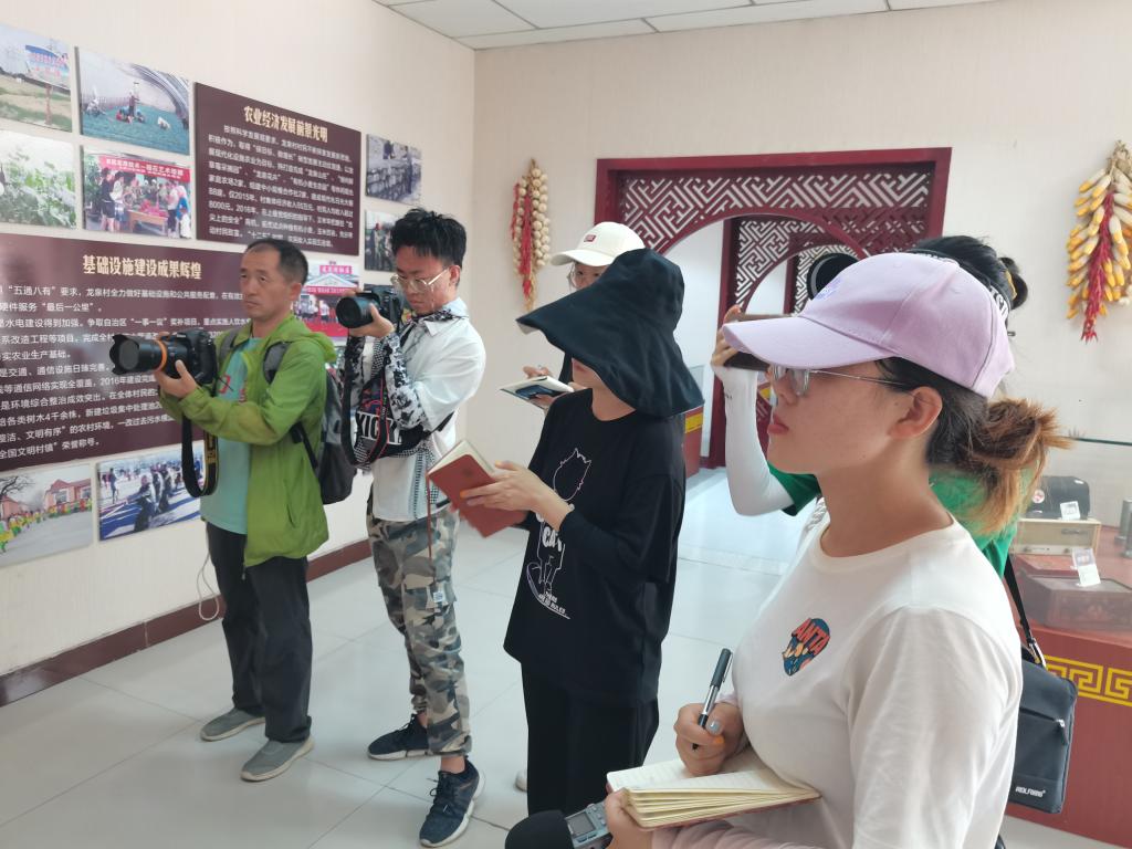 在讲解员的带领下,大家先对龙泉村有了一个大致了解:长胜街道龙泉村地处大武口区南部,西依贺兰山,东临110国道,因村内有九个天然泉眼而得名并形成了“山、庄、田”错落有致的地理形态,先后荣获全国文明村和全国生态文化村。