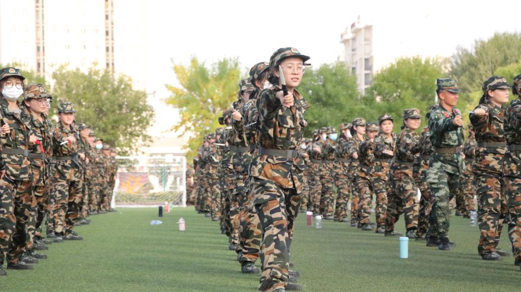匕首操的千人方队在操场上一遍遍练习,“格斗准备!”、“杀!杀!杀!”,一个个标准的动作伴随着一声声口号响彻操场,女声铿锵,男生雄浑,匕首生风,识要领、知要求、显气魄,匕首操,虎虎生威。他们迎着骄阳,汗水流淌,也毫无疲惫之意,他们目光如炬,挥刀迅猛有力;他们有迎难而上的勇气,气吞山河的气势。