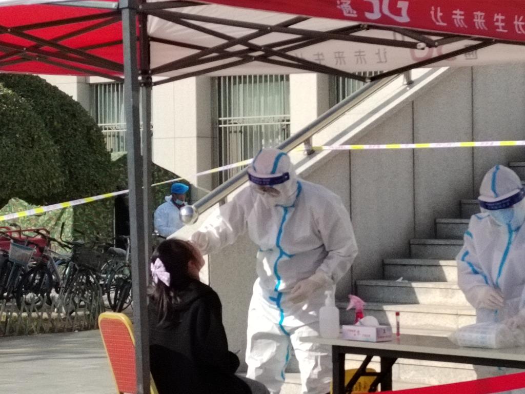 有条不紊地对防疫工作进行安排,一方面对校内人员进行精准地排查,一方面及时开展线上教学,同时进行防疫知识宣传和安抚师生情绪。我有幸加入了宁大青年突击队,成为了一名光荣的志愿者,在第二次核酸检测中担任封箱工作。我化身“大白”,即使经过培训,初步入工作还是略有紧张,一步一步都小心翼翼,生怕出错,二维码要校对准,试管数量要核实清、工作单要填写实……我抬头,看到的是区医院的医护人员在不畏疲倦地采集样本;低头,看到的是同岗位的志愿者鼓励的微笑。随着时间流逝,我的手法越发熟练,一剂又一剂试管从我手中有条不紊地被查验、录入、消毒、封箱。