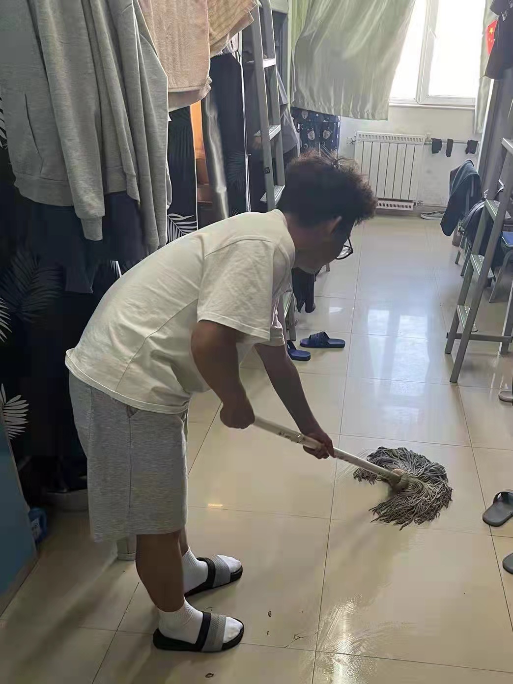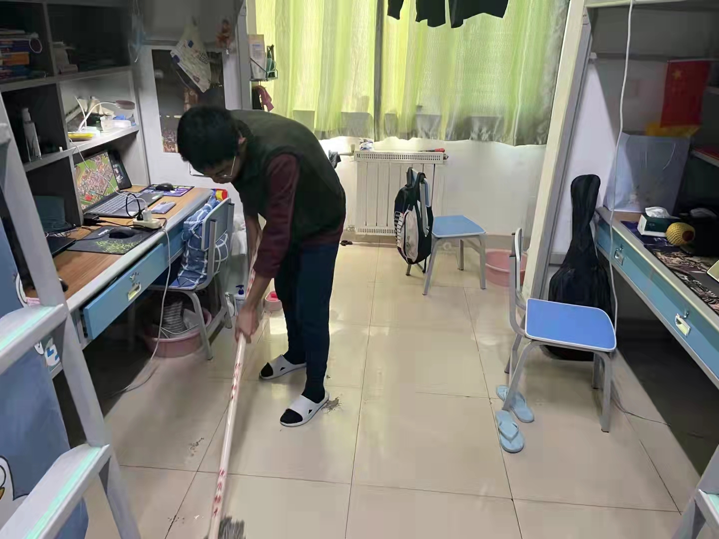 为了保持宿舍内的清洁卫生,创造一个干净整洁的学习和生活环境,博彩体育 组织全体男生开展宿舍卫生清扫活动,同学们积极响应号召,踊跃投入到打扫卫生的行列中。