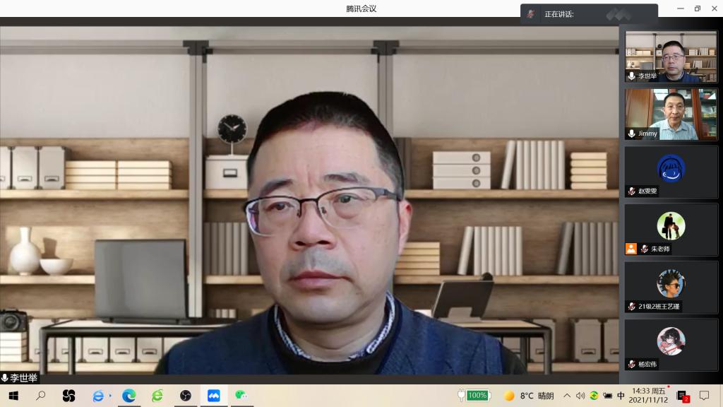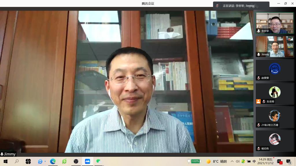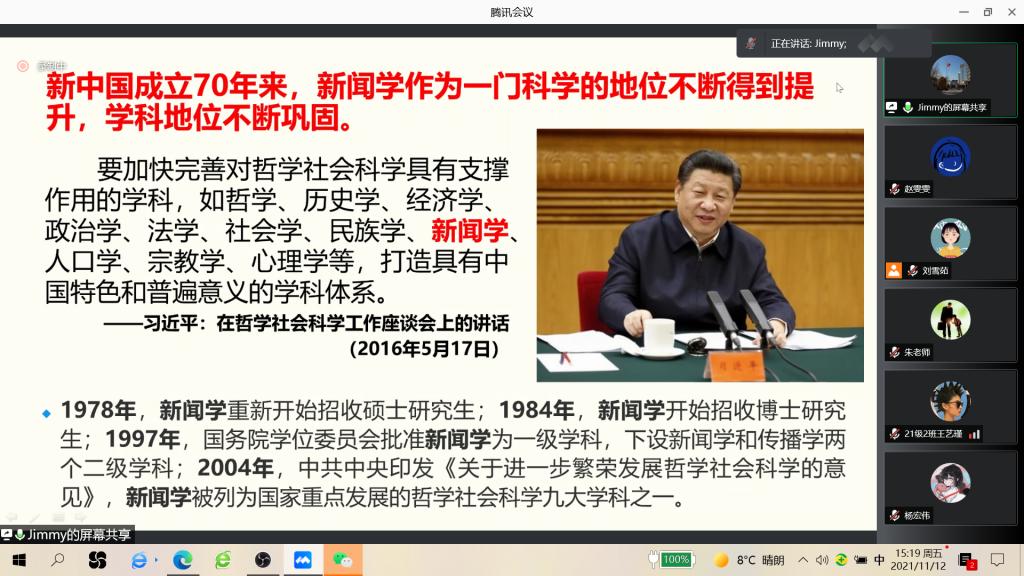 最后,季为民谈到网络时代新媒体对新闻学研究发展的重大影响向同学们推荐了具有新闻学研究价值的科学丛书,并与同学们展开全面的交流,解答了同学们对新闻学架构的疑惑,鼓励同学们努力学习科学文化知识,抓住历史机遇,争做有创新力,有能力、有担当的新时代新闻学架构研究者、构建者,不断为中国新闻学事业发展贡献活力。