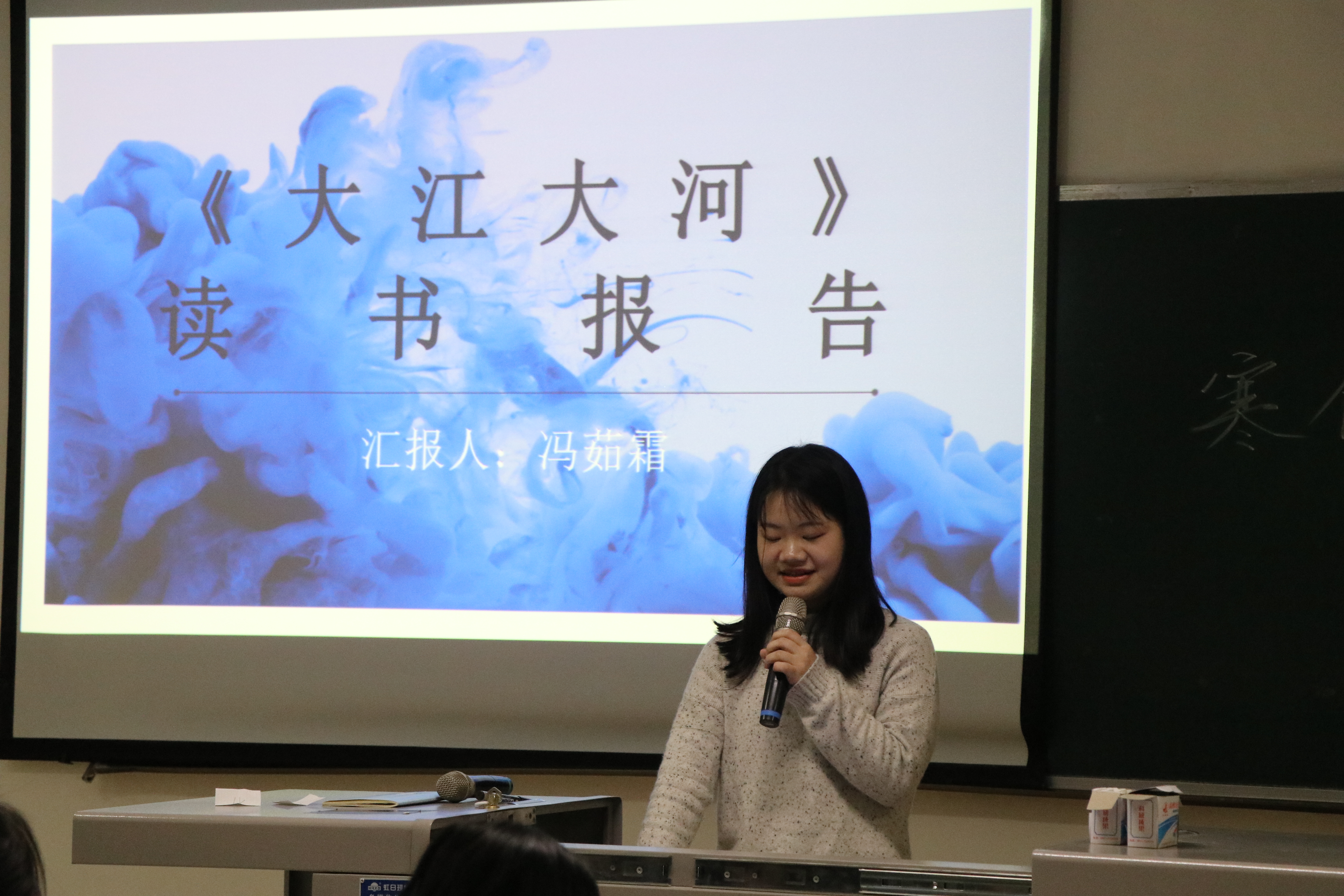 关于中国改革开放以来社会生活的变化和人民精神面貌的改进,冯茹霜介绍了《大江大河》一书,与同学们分享了对这本书的感悟——正确的价值观不可抛弃,要在光怪陆离的世界中仍然保持自己的初心,尽可能地坚守自己的底线。