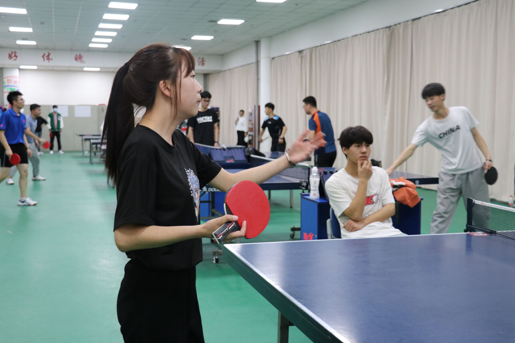 女子乒乓球比赛精彩瞬间