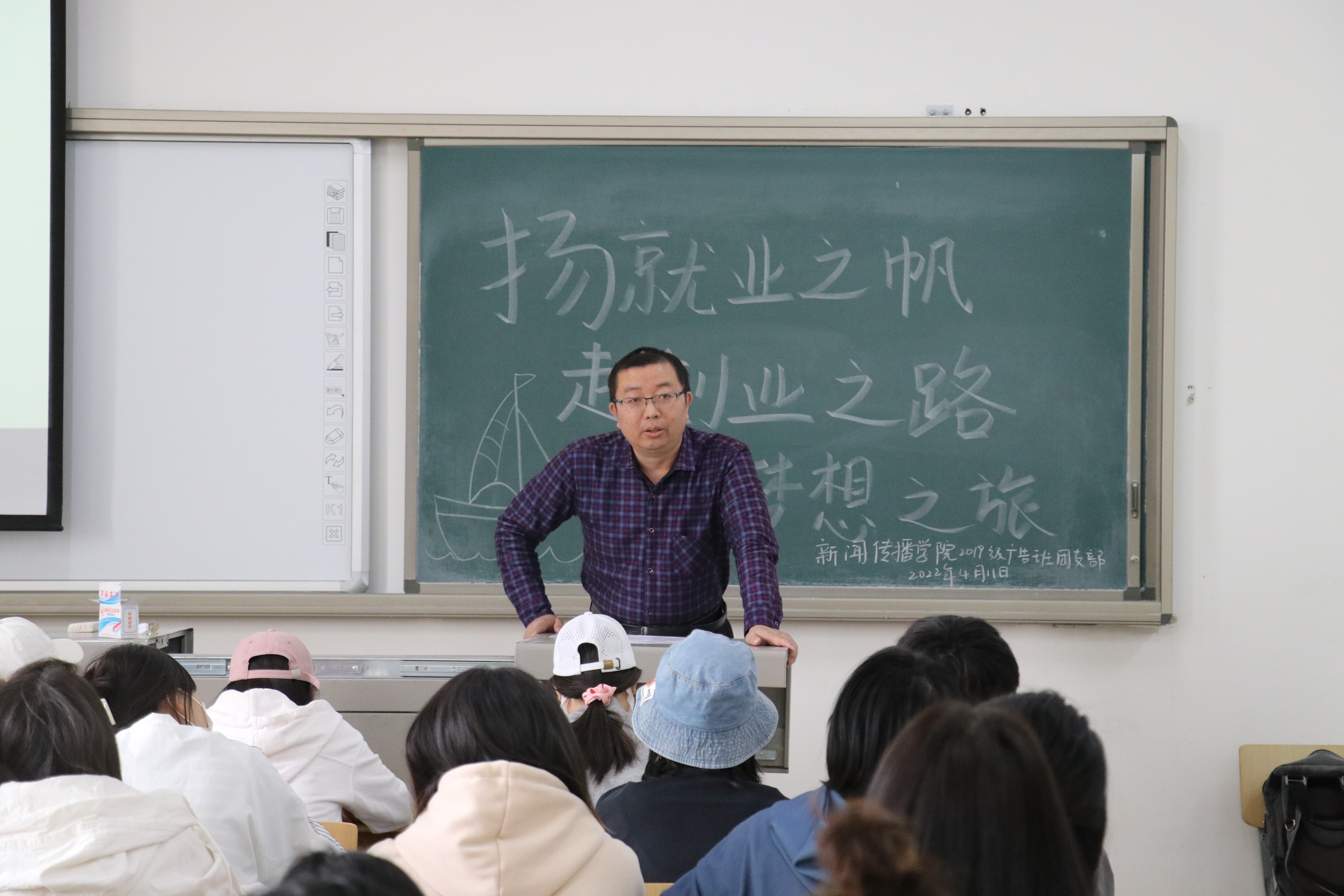 活动最后,19级广告班班主任朱俊松针对广告专业同学的一系列疑问进行了专项答疑。他表示,毕业生面临最大的问题是实习、考研和考公。同学们可以通过实习寻找自己喜欢或者擅长的领域进行就业,在实习中觉察到自己的价值,促使自我意识的觉醒,寻找自己的优势所在,是同学们不懈奋斗的关键所在。