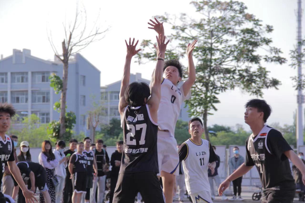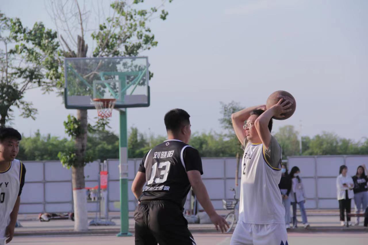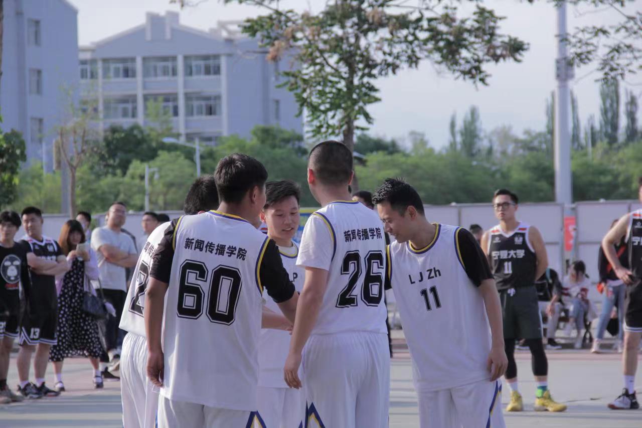 于文萃校区篮球场开展篮球友谊赛。新传学子热情高涨,活力满满。