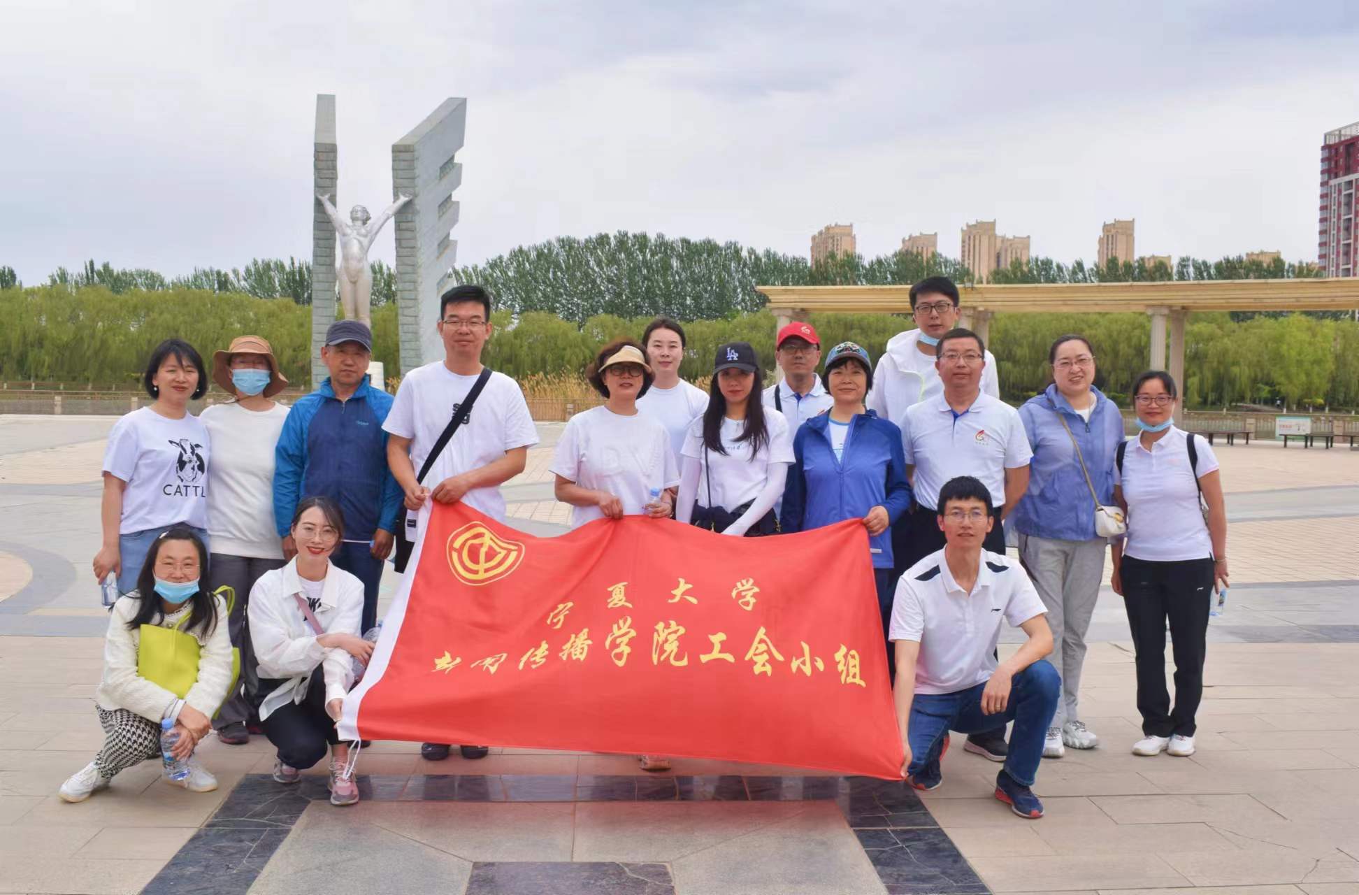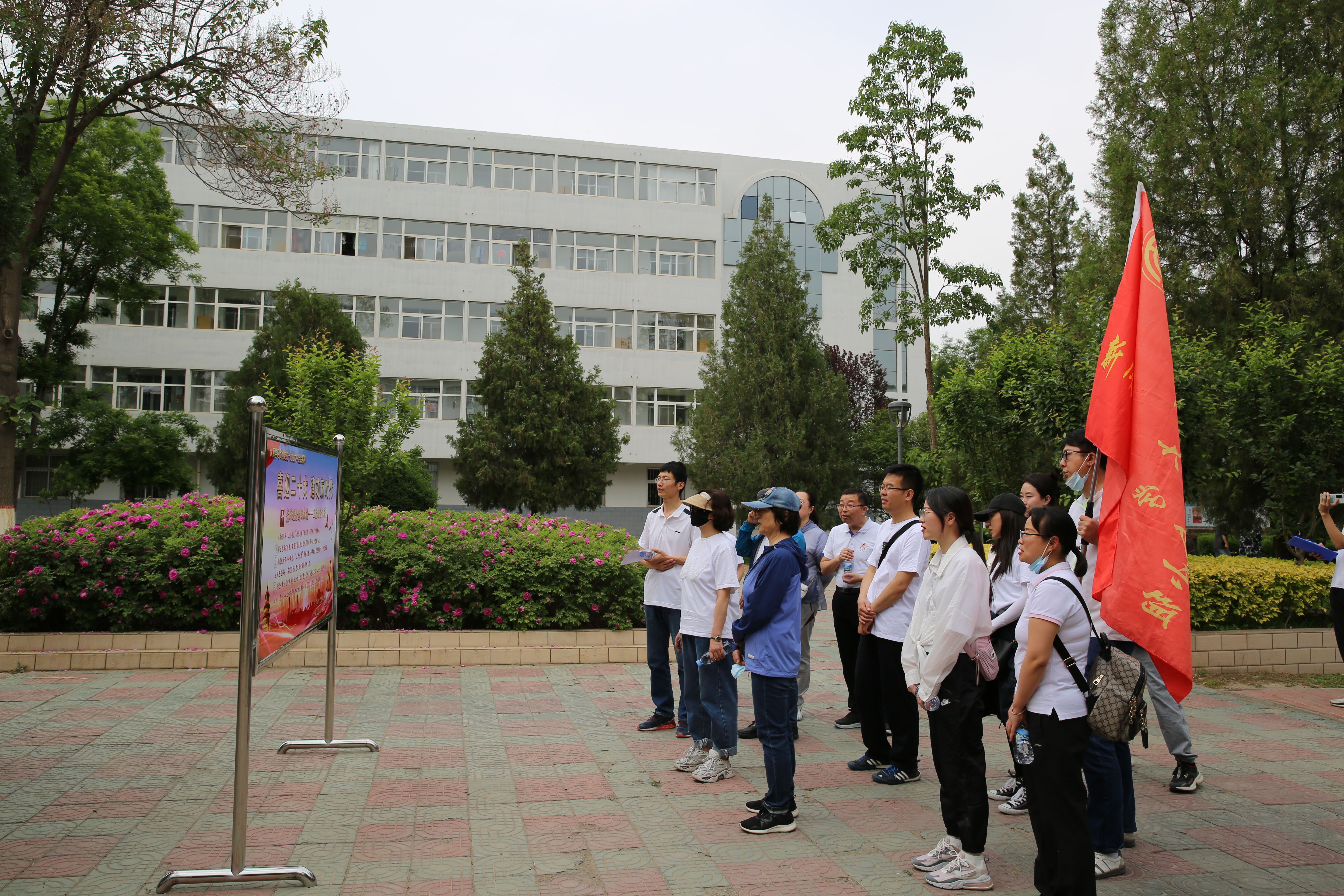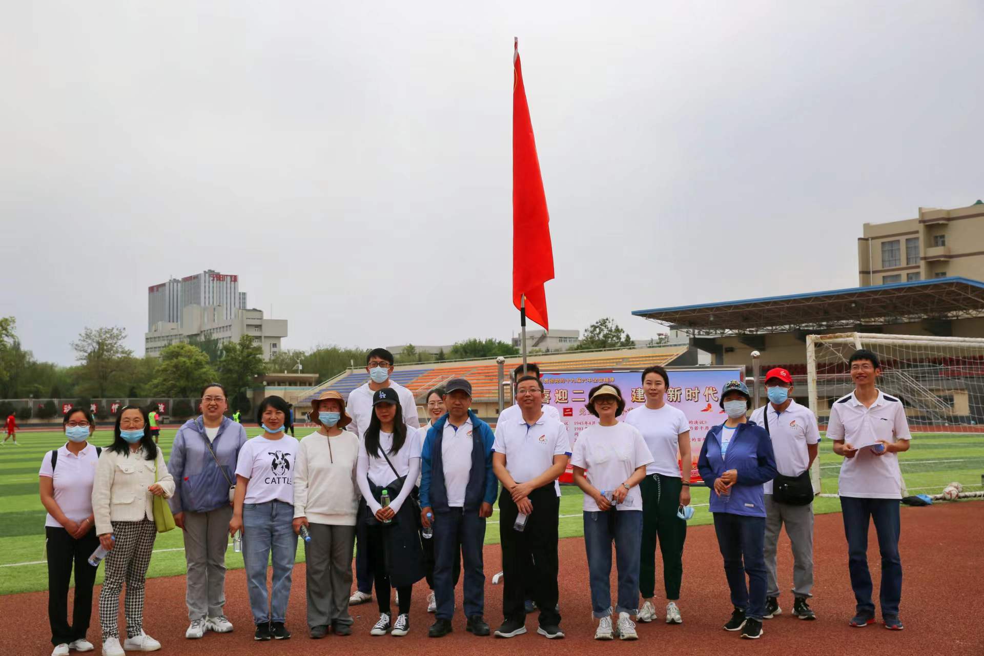 教职工集合于怀远校区凌云广场,参加全校集体健步走活动。