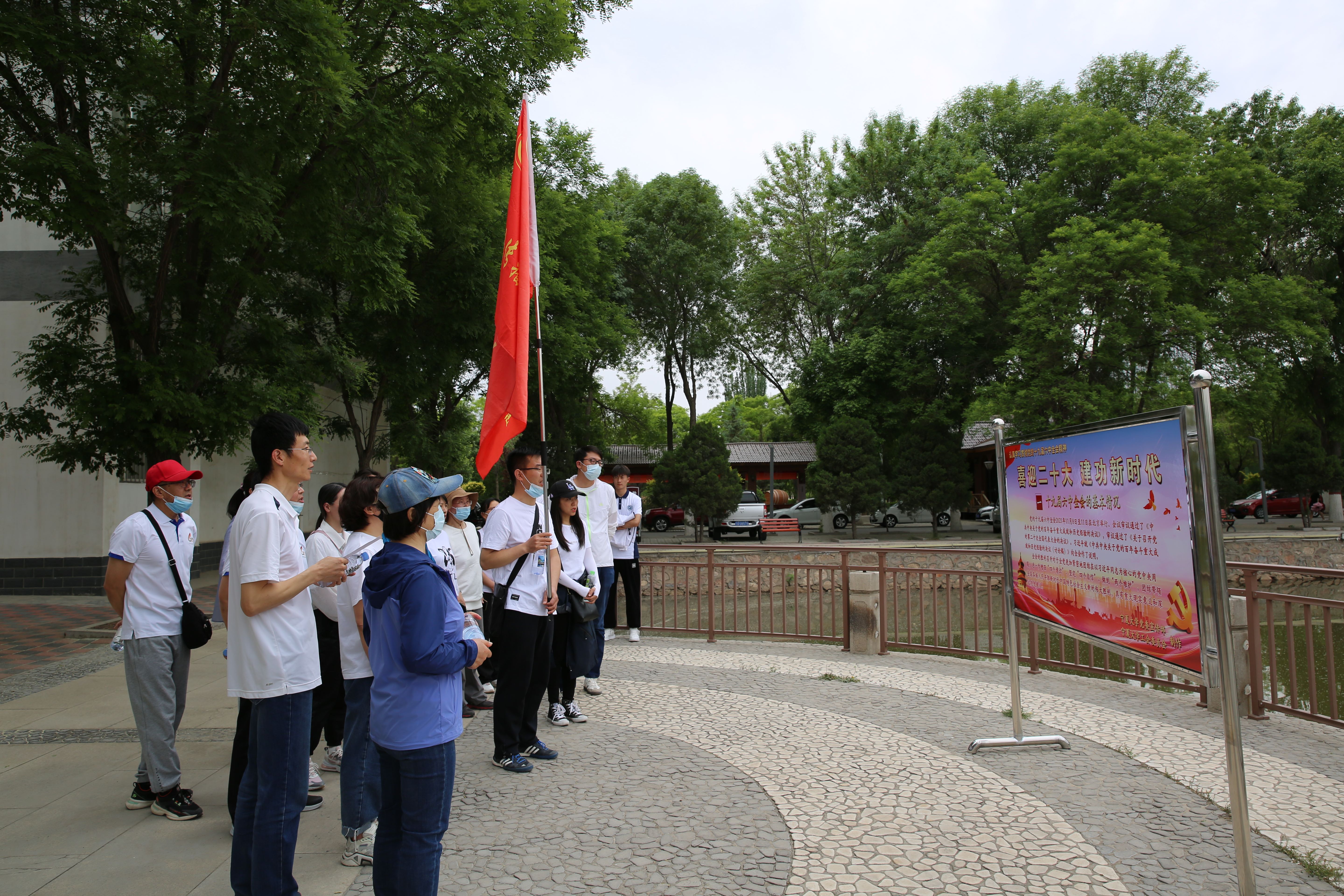 老师们甩臂迈步,边走边聊,一边观赏校园美景,一边享受运动带来的快乐,一路欢声笑语。活动以怀远校区环金波湖健身步道为主赛道,辐射周边田径场、图书馆、曾宪梓楼、体操馆等校园经典赛场,全程共设20个打卡集结点,每个打卡点有党的十九届六中全会精神要点背景板。老师们每到一处打卡点,都整齐划一、认真、大声地集体朗读背景板内容,加深理论知识的学习。