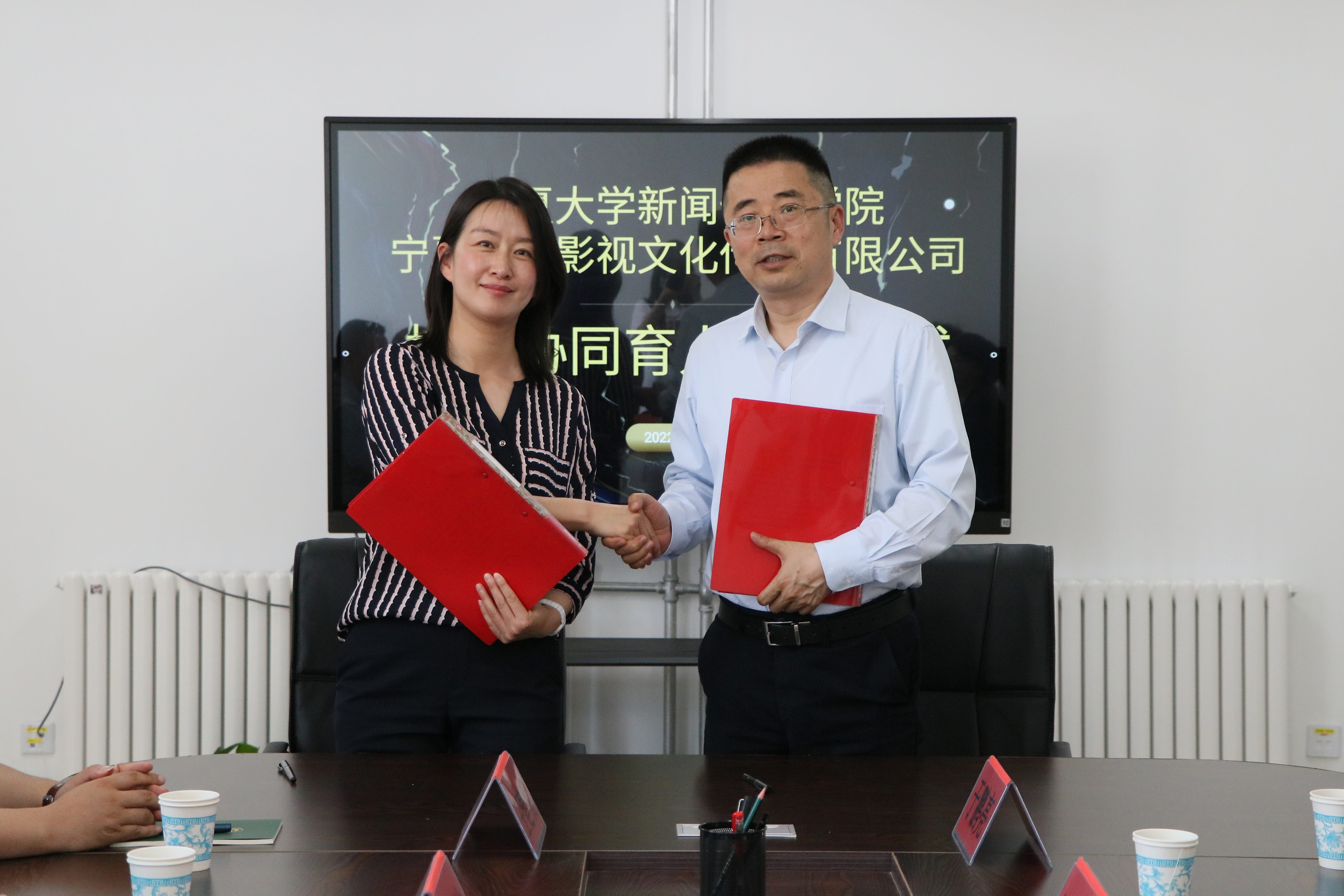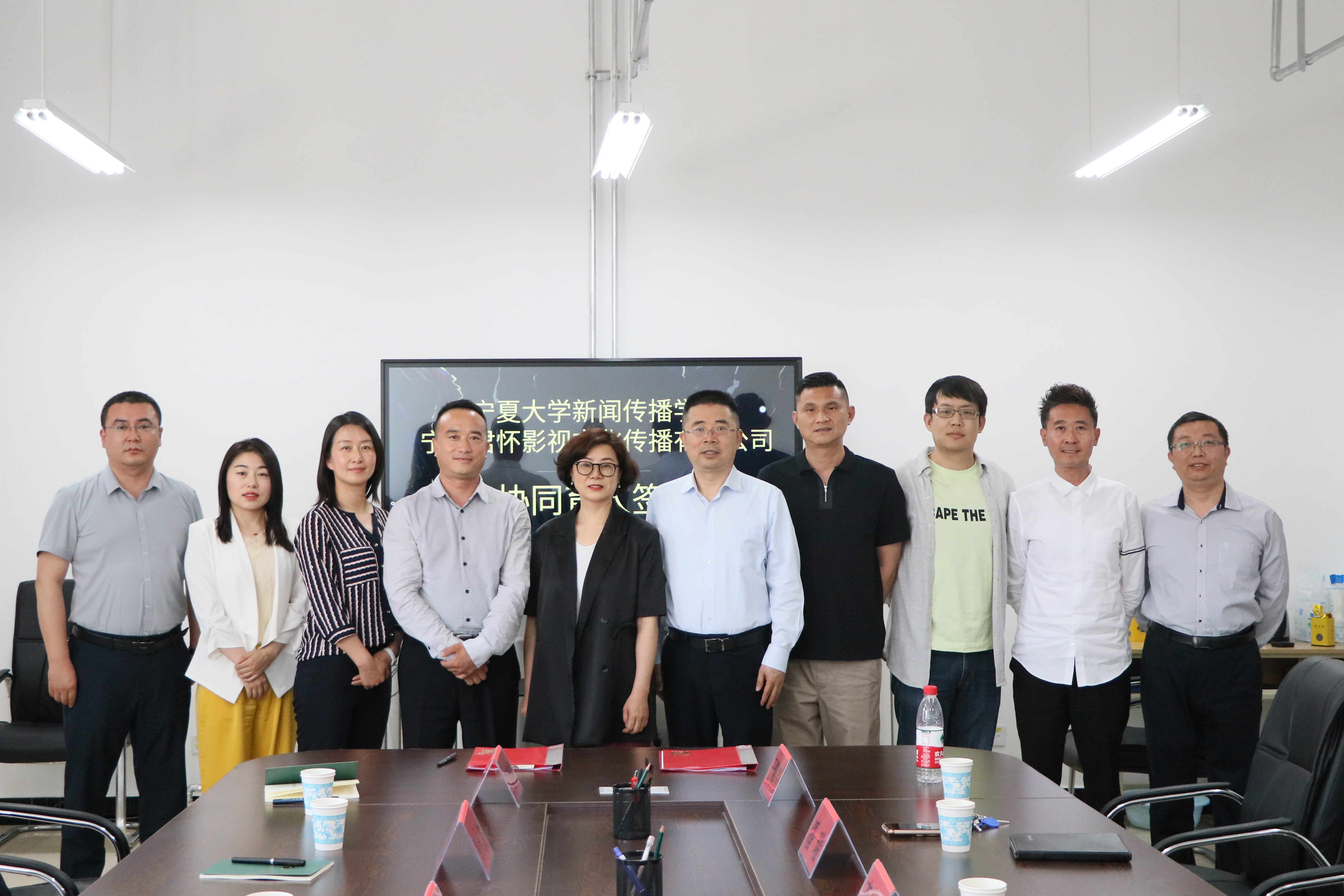 与宁夏君怀影视文化传播有限公司校企协同育人签约仪式在新闻大楼318会议室举行。宁夏君怀影视文化传播有限公司法定代表人高永波、宁夏君怀影视文化传播有限公司法律顾问樊蓉、博彩体育