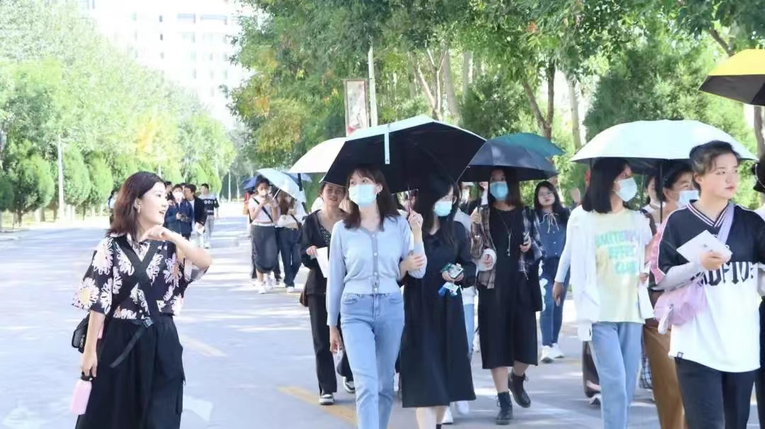上午九点,三个小组于文萃校区智慧餐厅门口集合,在李鹏强、于晨曦、刘小舟三位学长的带领下游览校区。新生们先后参观了食堂、图书馆、大学生活动中心、操场、凌云广场、金波湖、孔子雕像等校园景观。于晨曦学姐向同学们详细介绍:“贺兰山校区的南大门正对着的雄伟建筑,是校园的主楼。博彩体育