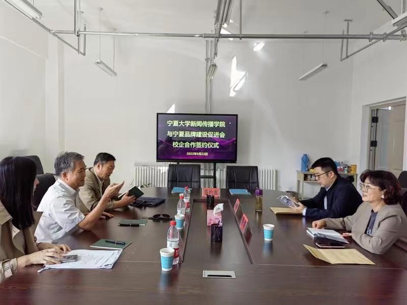 9月22日上午,博彩体育 与宁夏品牌建设促进会签订了校企合作协议。党总支书记潘瑞、执行院长李世举,宁夏品牌建设促进会常务副会长张进海、高级经济师孙光贵、副秘书长郭涵参加了签约仪式。