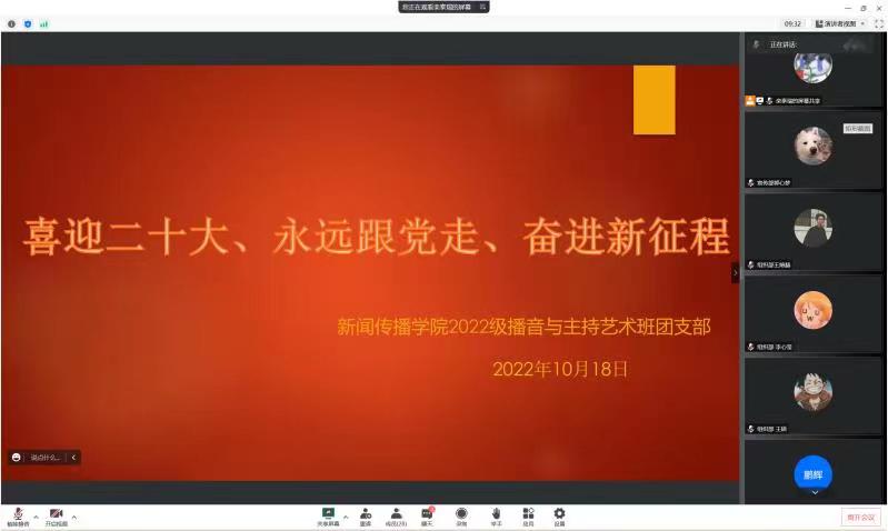 各班紧紧围绕党的二十大主题,带领学生回顾党的百年奋斗历程,了解新时代、新征程党的使命与任务,学习新时期党的政策与方针。播音与主持艺术班组织委员栾泰瑞介绍了基层工作者和多国记者对党的二十大的寄语和评价,通过不同身份、不同经历的人们的视角充分展示出全世界、全社会对党的二十大的重点关注。