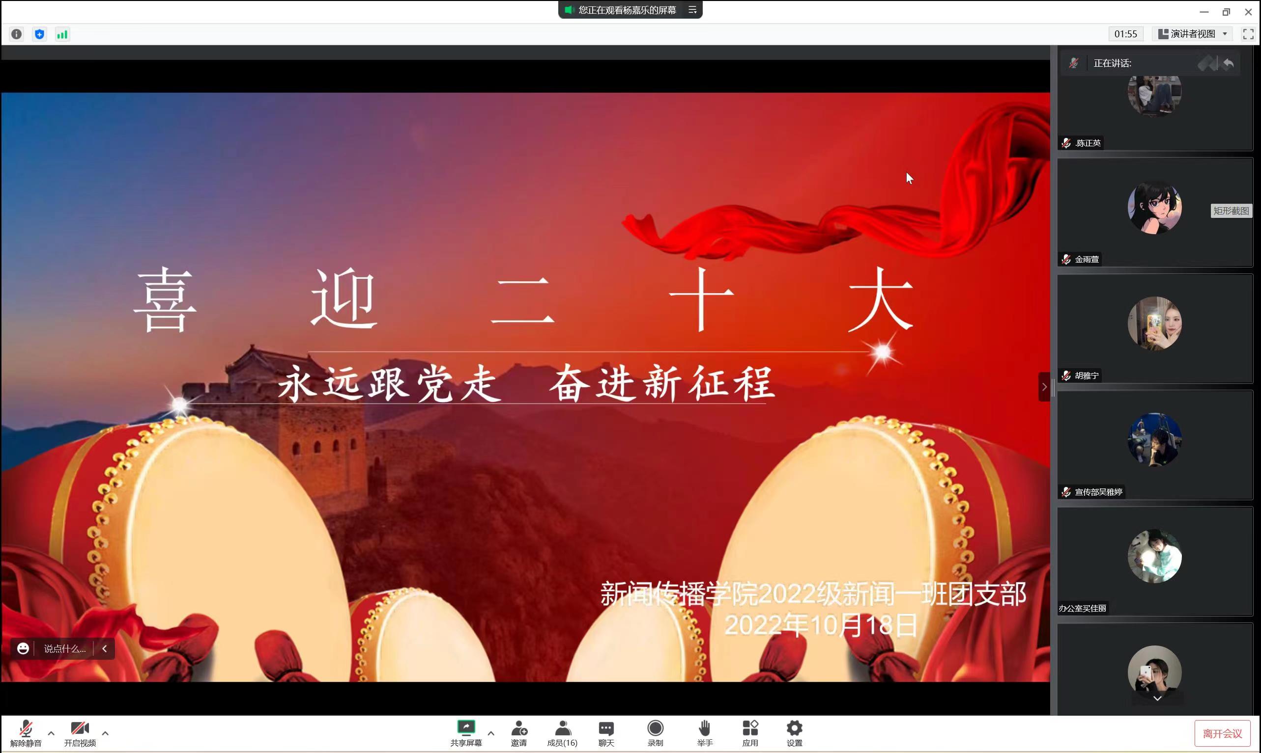 开展以“喜迎二十大,永远跟党走,奋斗新征程”为主题的线上团日活动,2022级全体学生参加了活动。