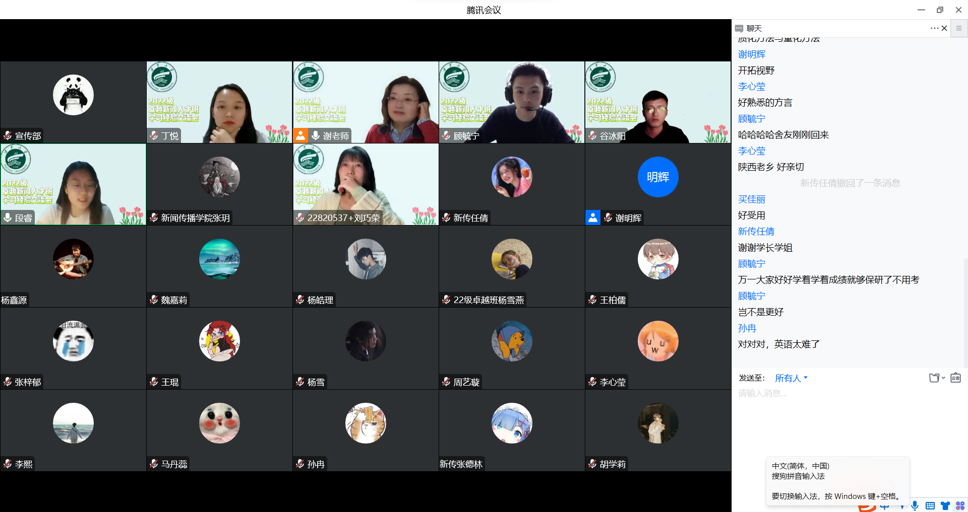 获得保研考研成功的学长学姐:2014级丁悦、2015级谷冰阳、2015级刘巧荣、2017级段睿、2018级顾毓宁应邀参会,向2022级卓越班同学进行考研保研、学习方法上问题的解答。