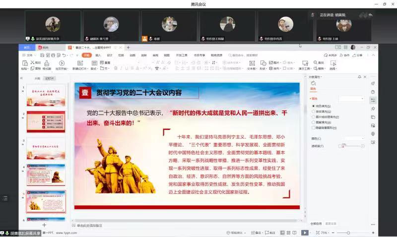各班紧紧围绕党的二十大主题,带领学生学习党的二十大报告,领会党的二十大精神。2020级卓越新闻人才班团支部书记秦媛向同学们展示了人民论坛发布的《二十大 二十问》视频,用更专业、更科学的角度向学生解读党的二十大报告中的亮点。