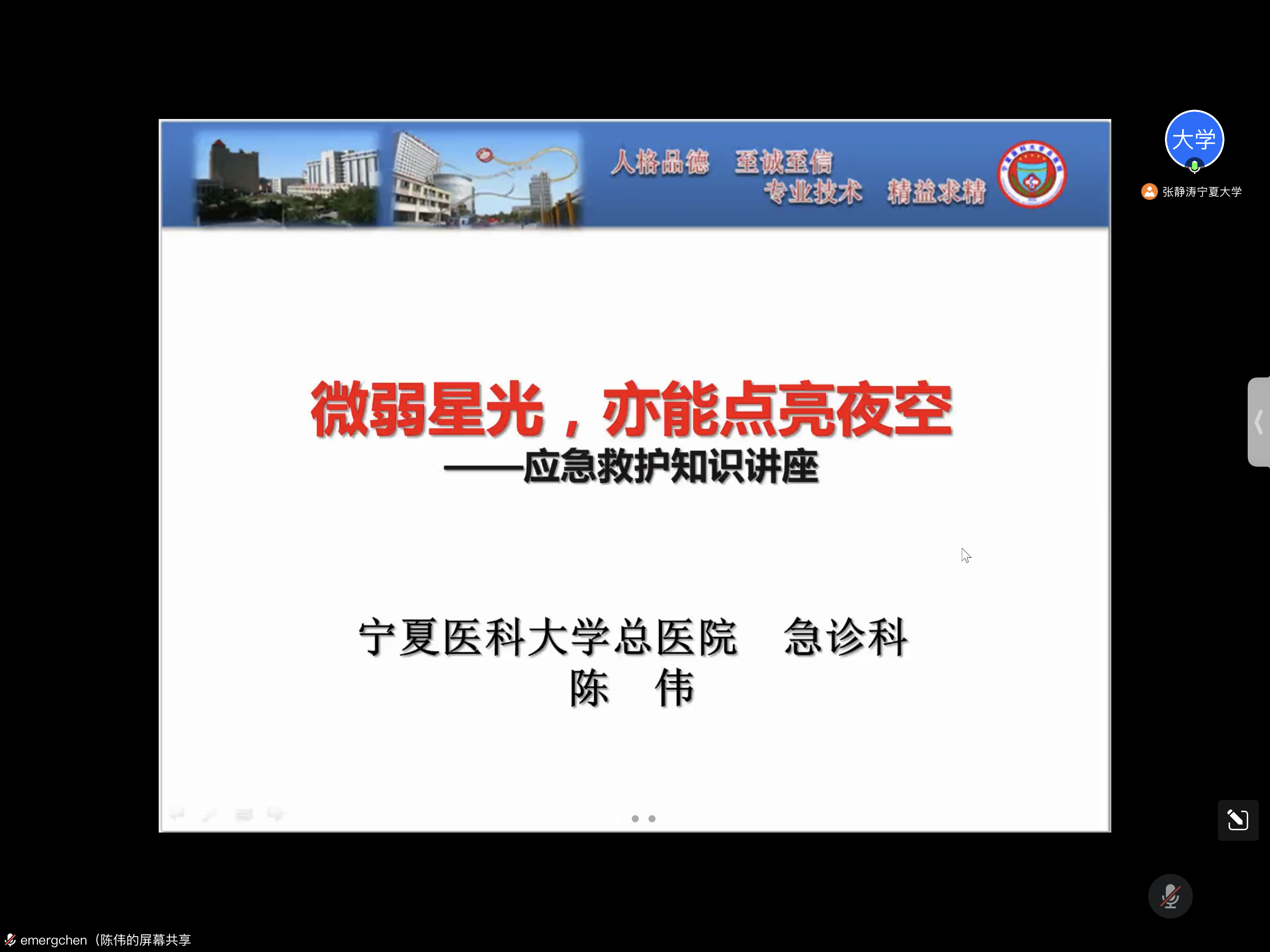 承办的第八期马克思主义新闻观培训以线上方式举行。此次培训的主题是“微弱星光,也能点亮夜空---应急救护知识讲述”,特邀宁夏医科大学总医院急诊科主任医师、中华医学会急诊医学分会感染学组委员、中国医师协会急诊分会青年委员陈伟主讲,博彩体育